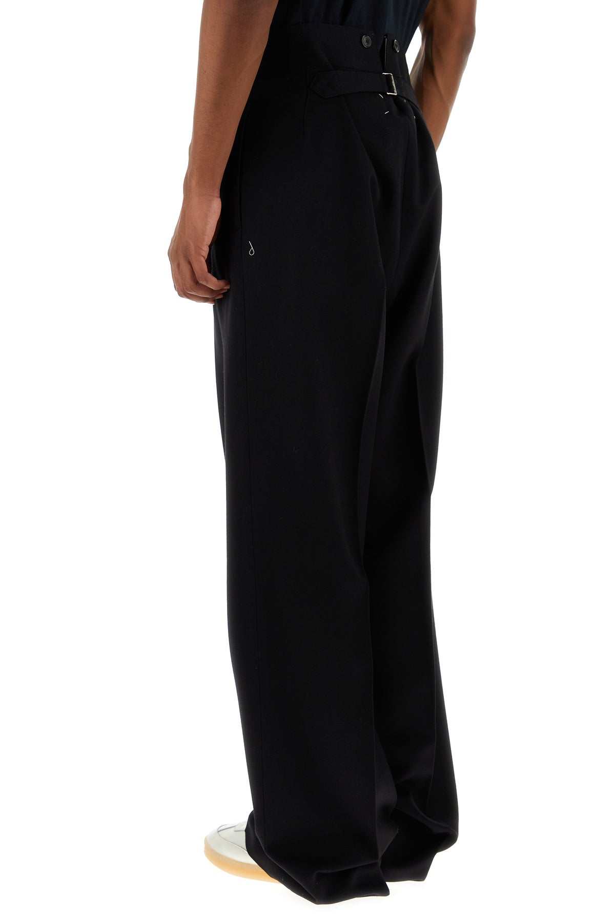 Pant realized in pure wool characterized by iconic contrasting stitchings at the back.