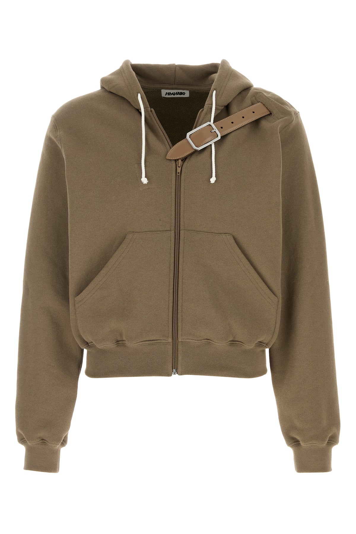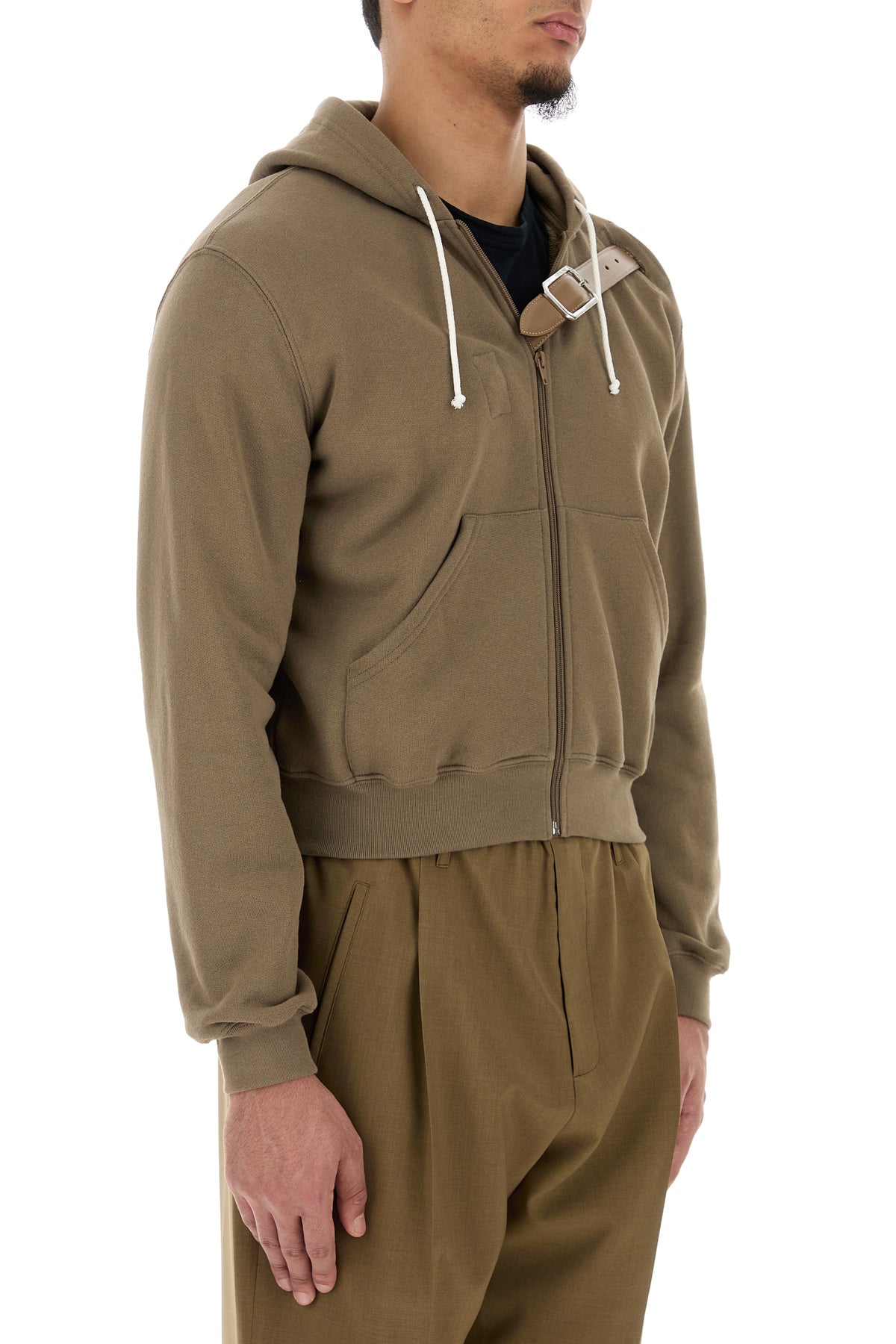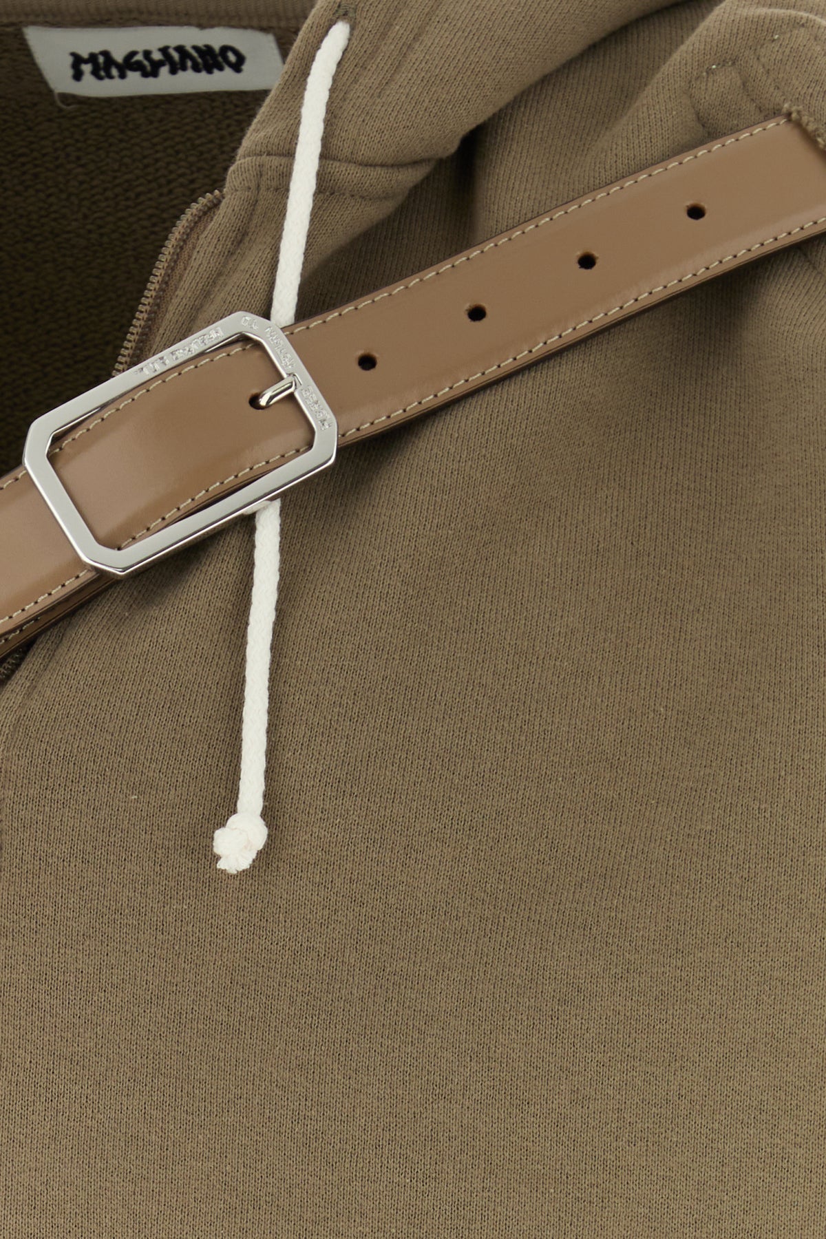 Sweatshirt realized in pure cotton enriched by adjustable leather strap with metal buckle at the top.