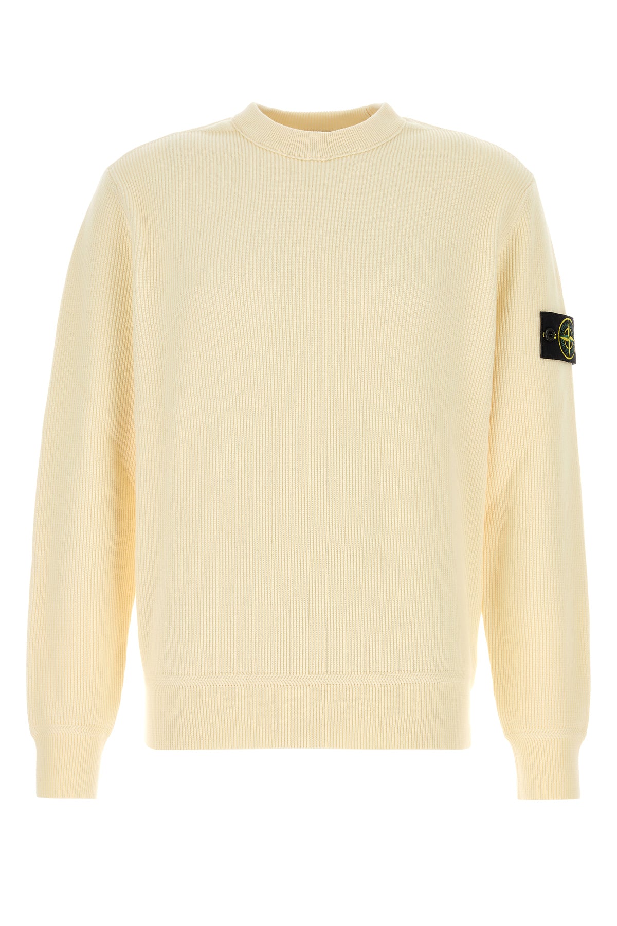 - Ribbed crew-neck, cuffs and hemline