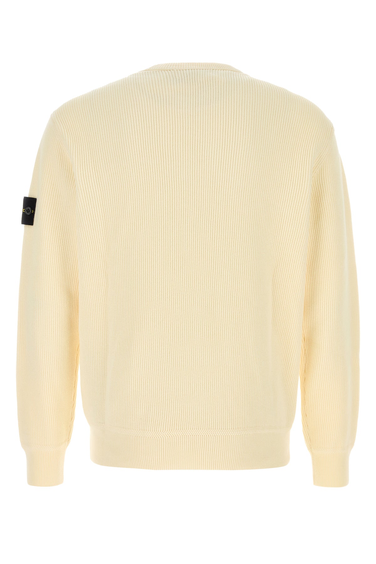 Sweater realized in pure cotton enriched by detachable logoed label on the sleeve.