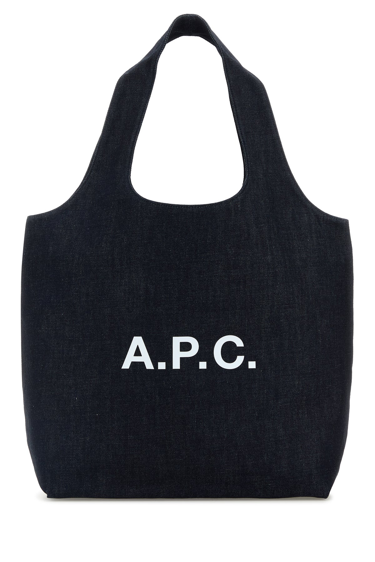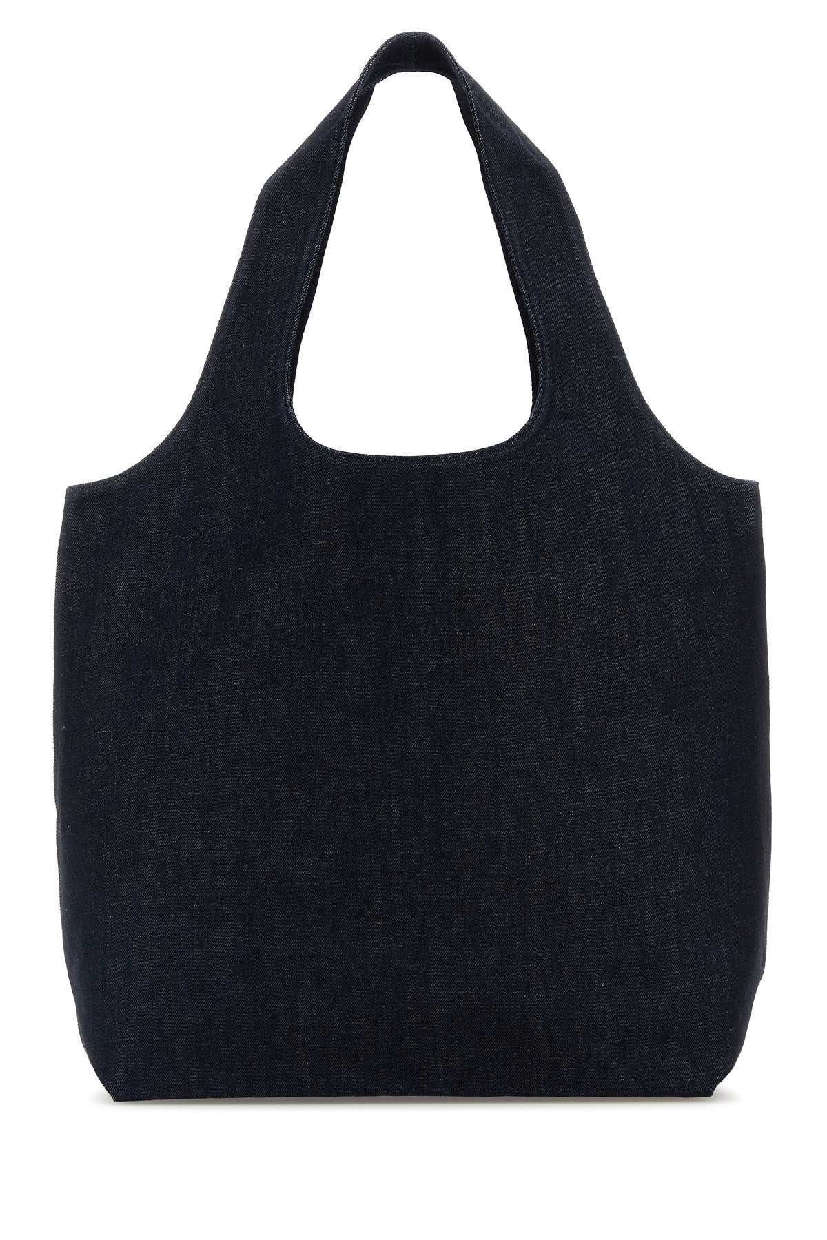 Shopping bag realized in denim characterized by contrasting printed logo at the front.