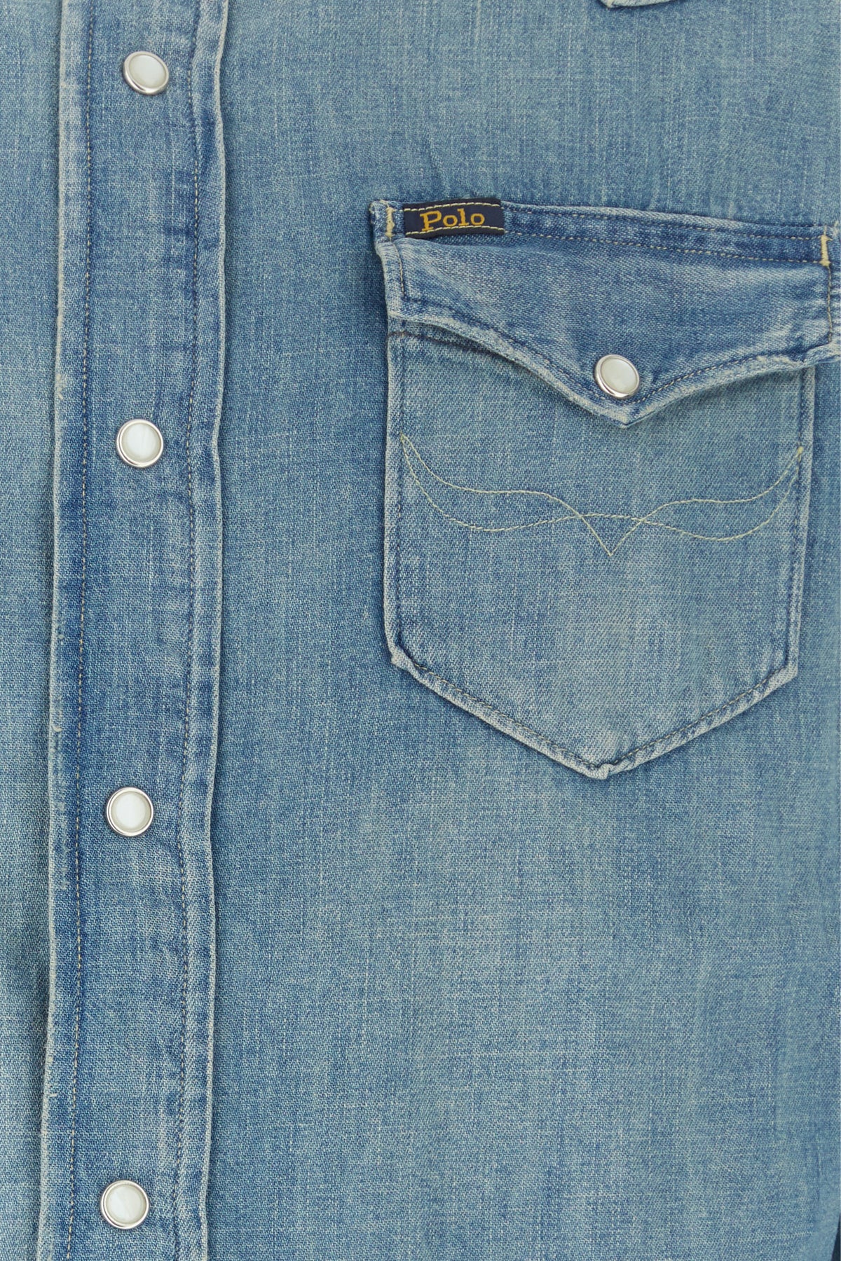 Shirt realized in sightly stonewashed pure cotton denim enriched by logoed label on the chest.
