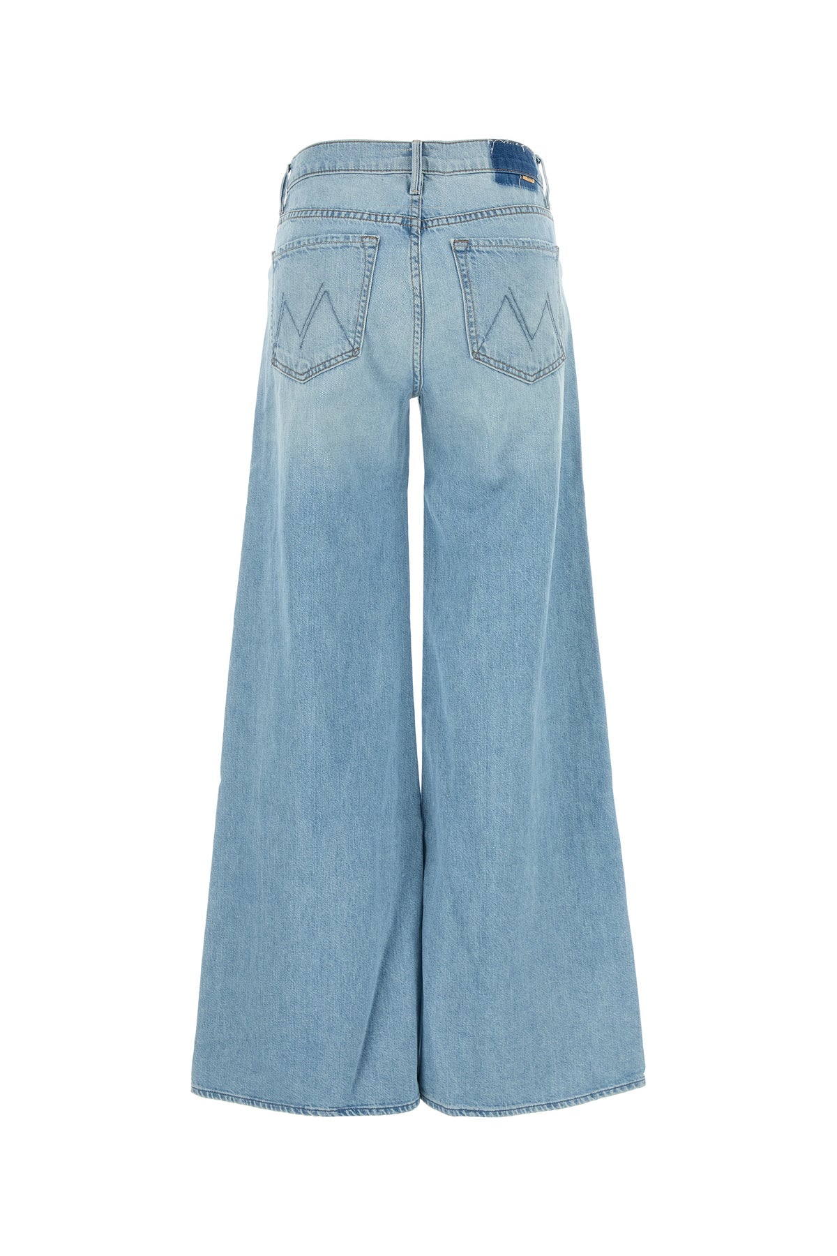Wide-leg jeans realized in pure cotton denim enriched by contrasting logoed label at the back.