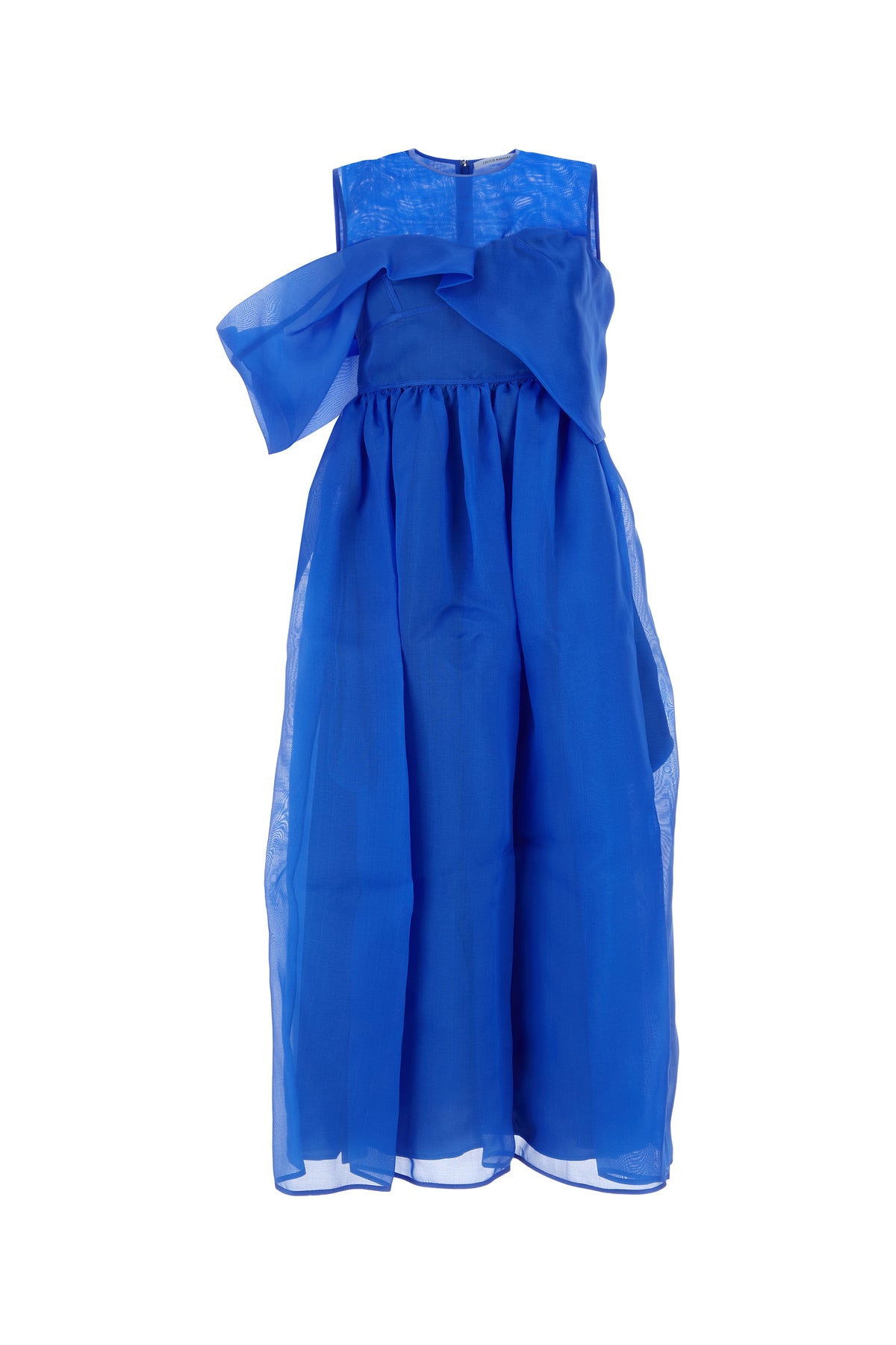 Long-cut dress realized in pure silk with peculiar crossing at the top.