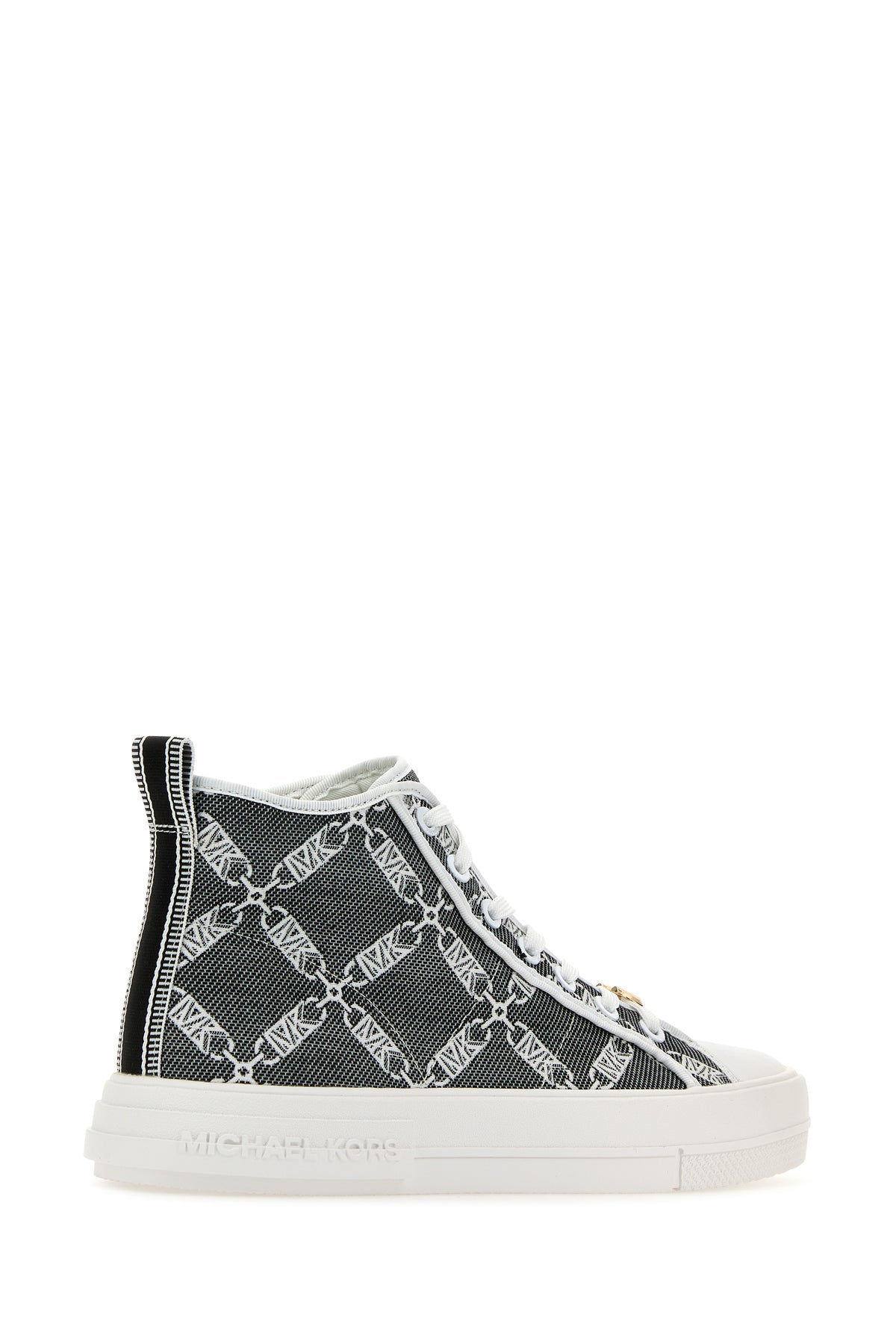 Sneakers realized in canvas characterized by logoed embroideries on the entire surface enriched by detachable metal logoed accessory.