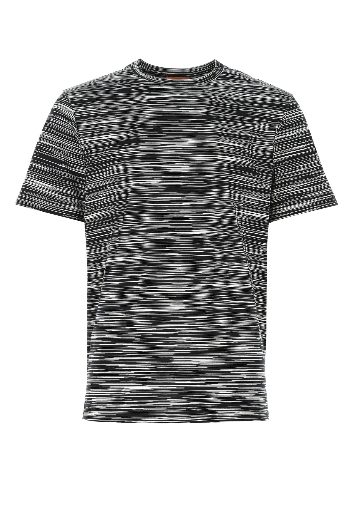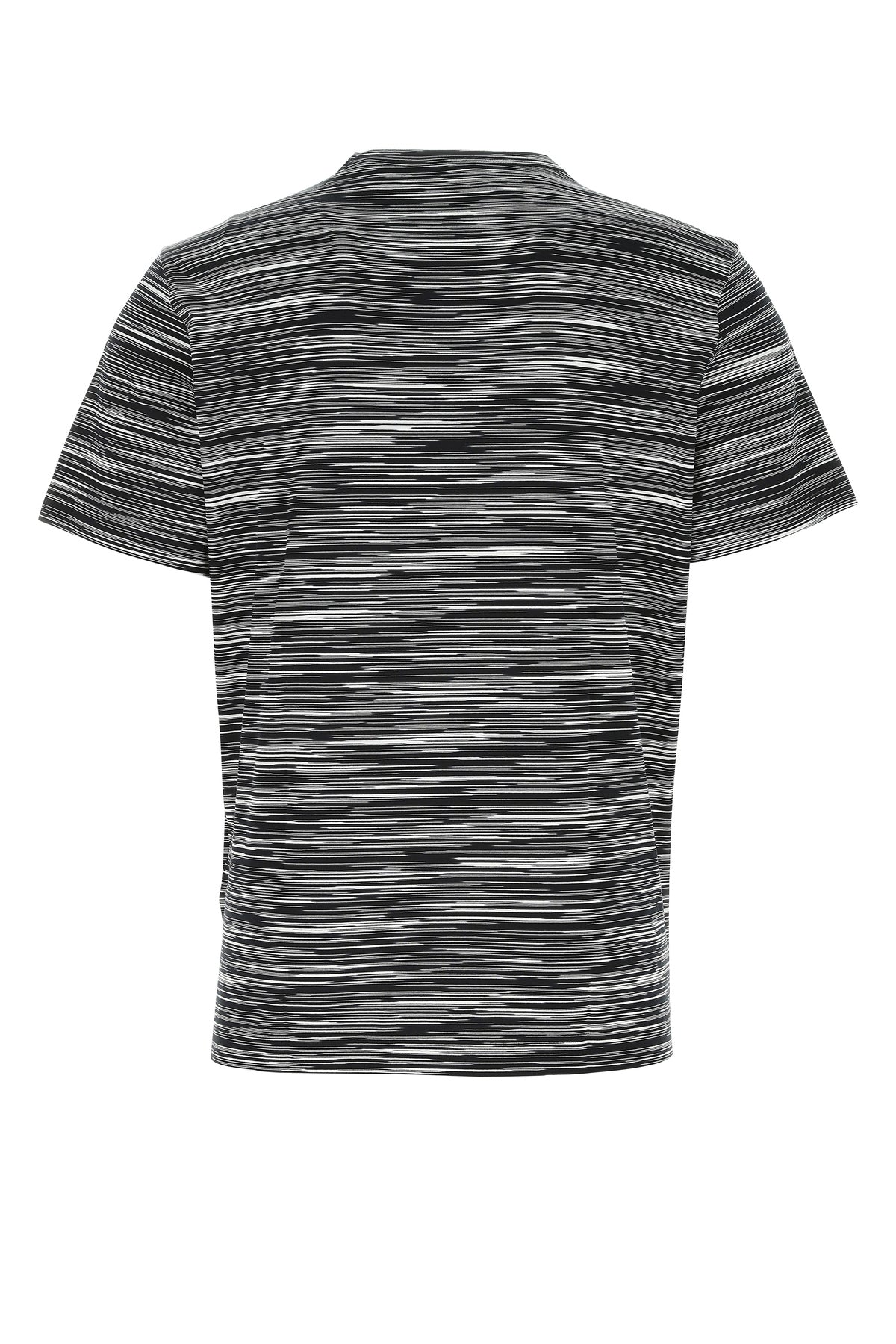 T-shirt realized in pure cotton characterized by striped embroidery on the entire surface.
