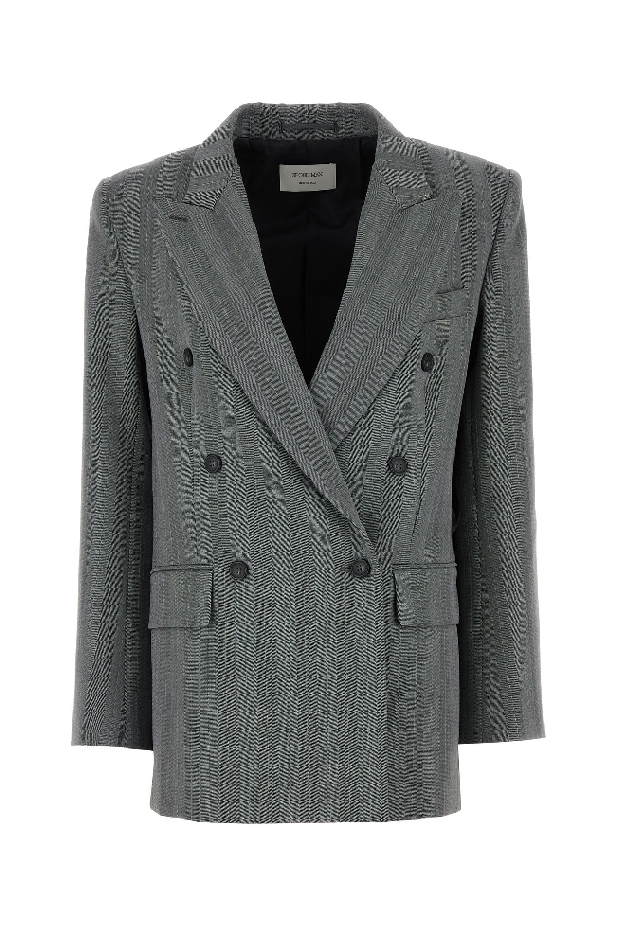 Blazer realized in stretch virgin wool blend characterized by peculiar striped embroidery on the entire surface.
