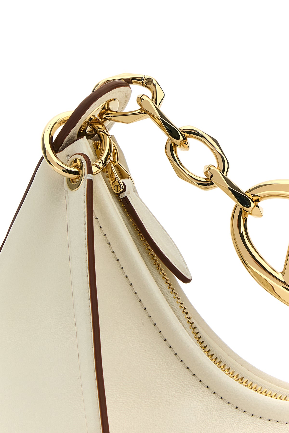 Handbag realized in smooth calf leather characterized by contrasting printed logo at the back.