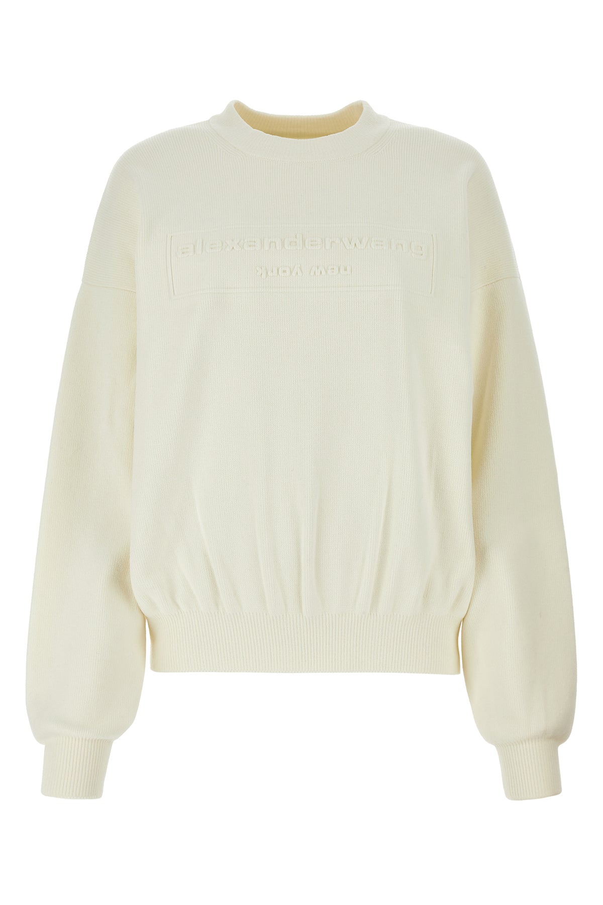 - Ribbed crew-neck, cuffs and hemline
