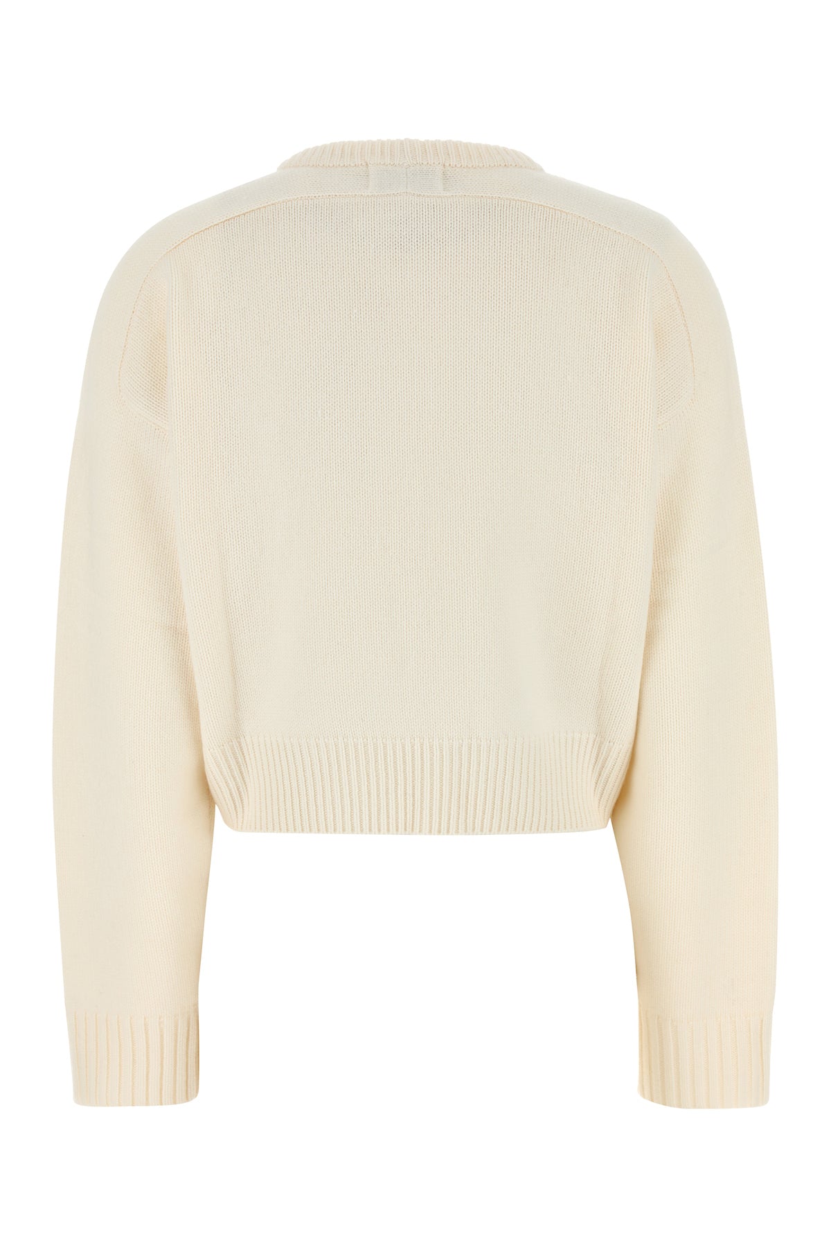 Cropped-cut oversize sweater realized in merino wool and cashmere characterized by tonal embroidered logo on the hemline.