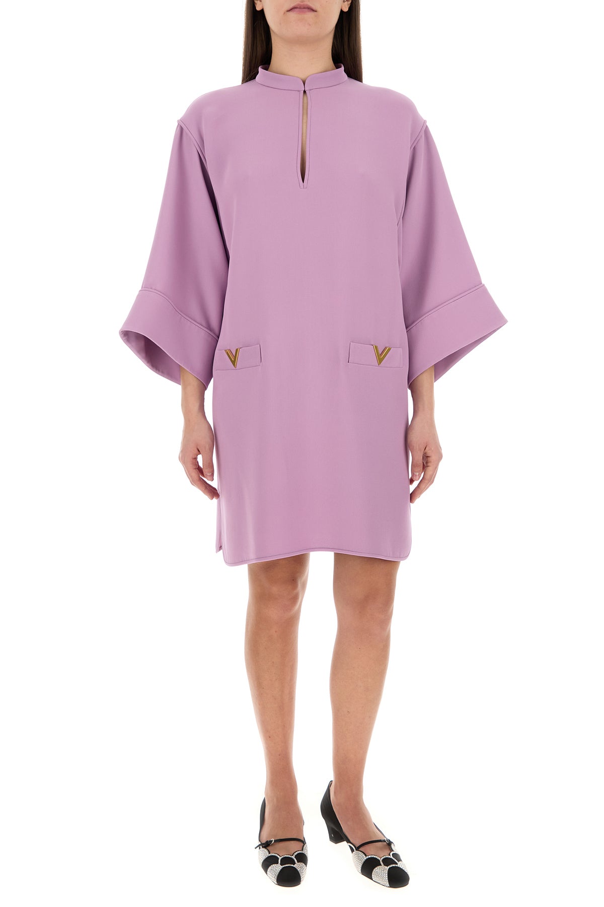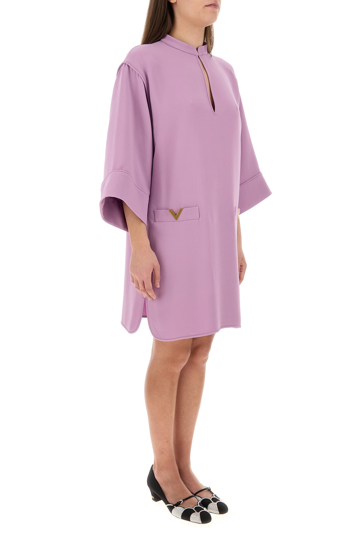 Dress realized in pure silk cady enriched by metal VLogo details at the front.