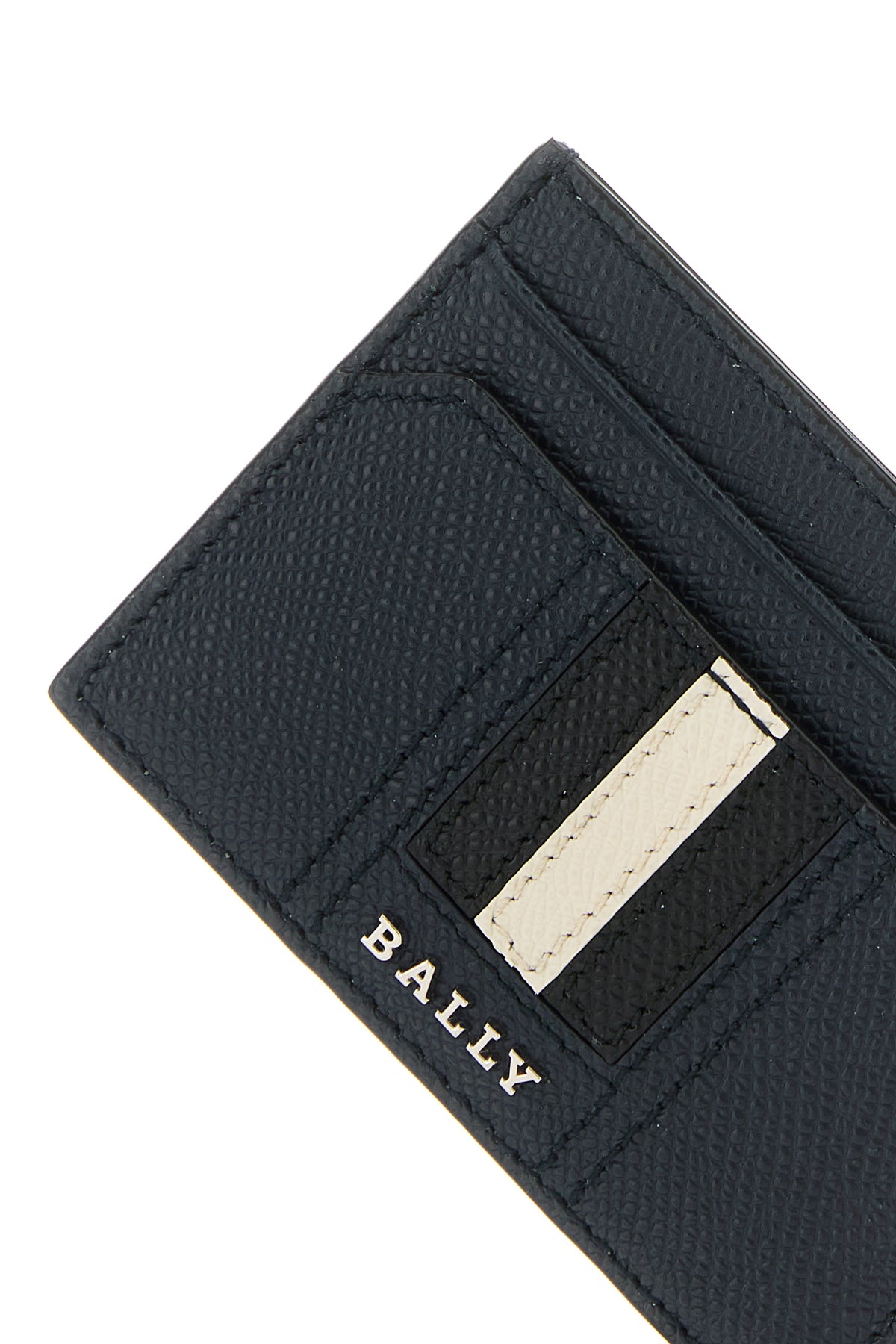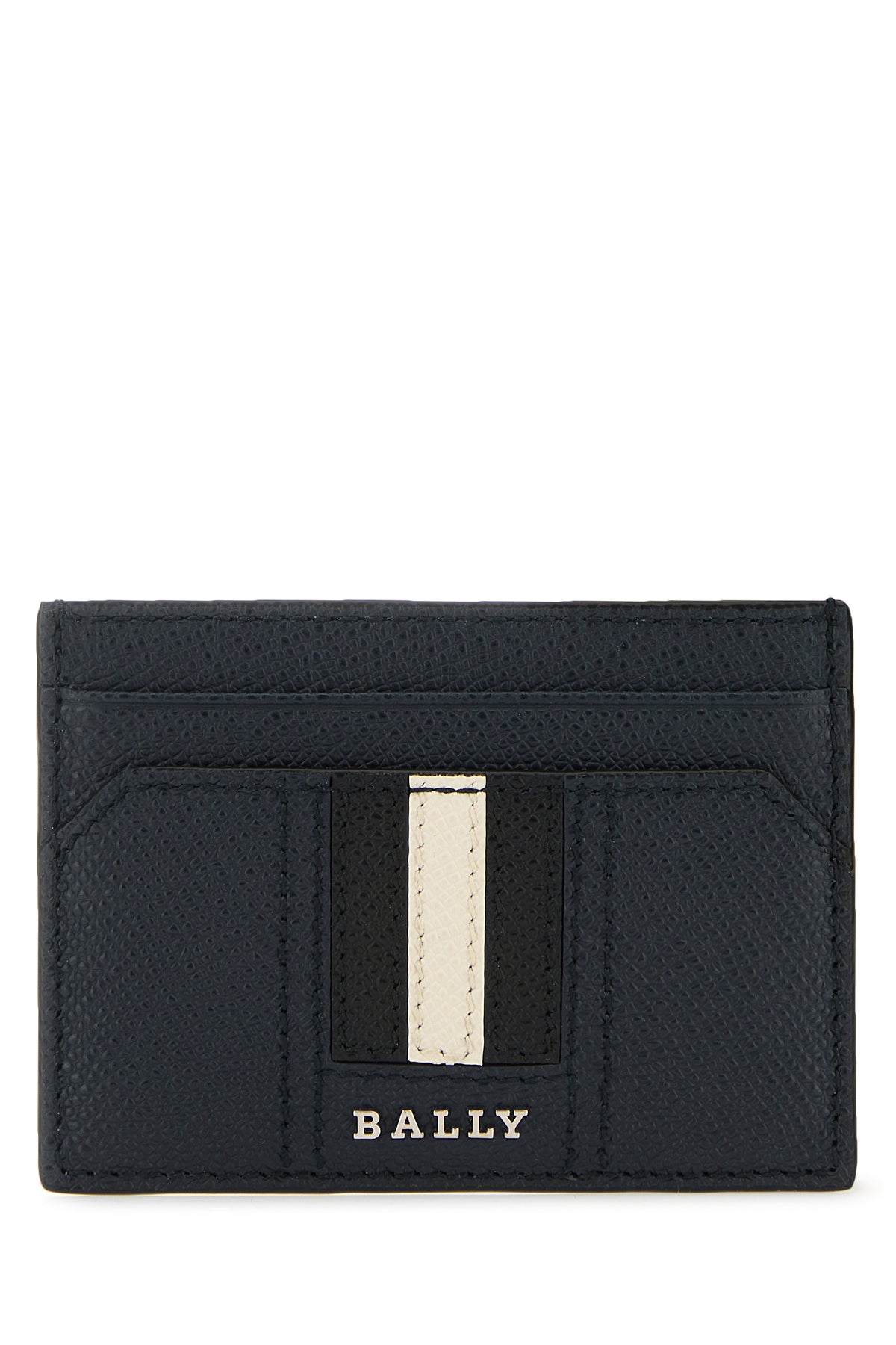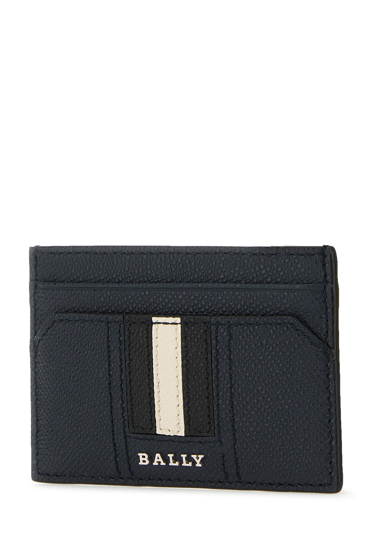 Cardholder realized in grained leather enriched by metal lettering logo and Bally Stripe patch at the front.