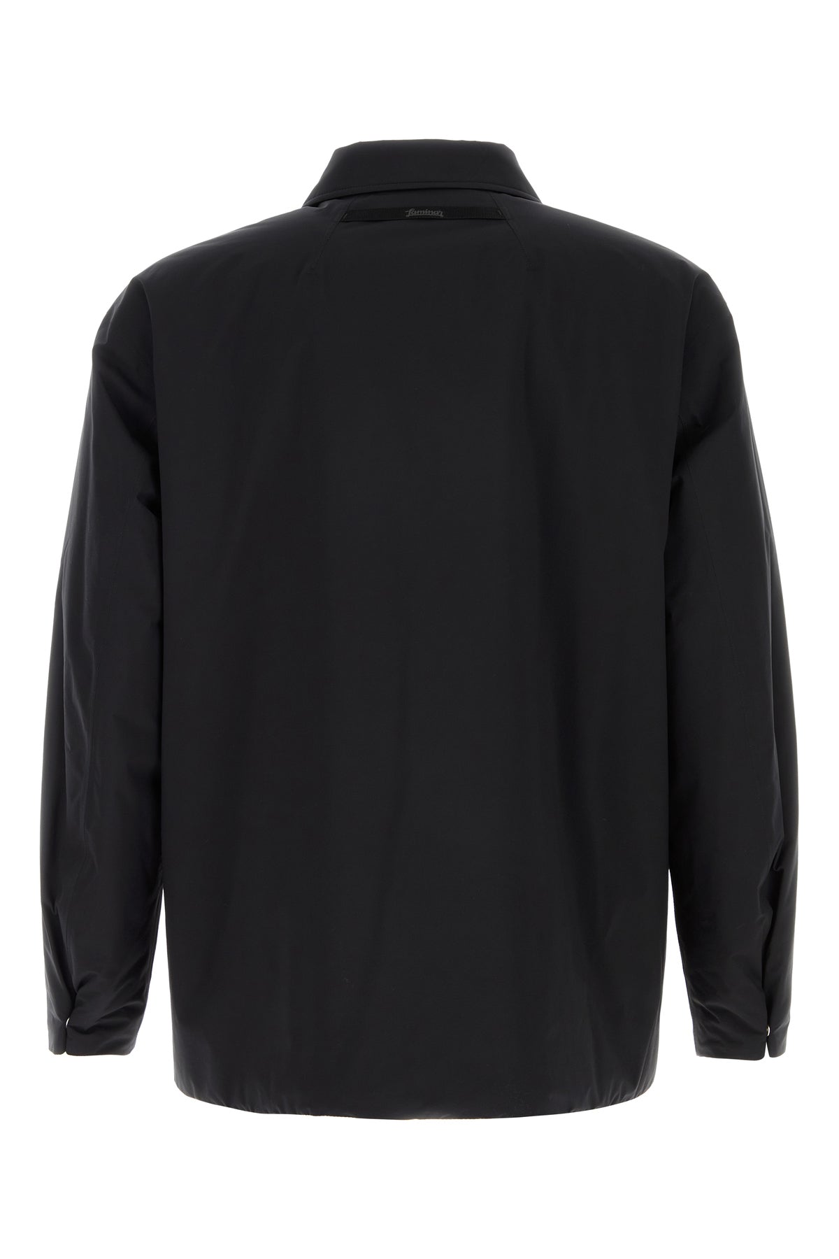 Padded jacket realized in nylon enriched by logoed label at the back.