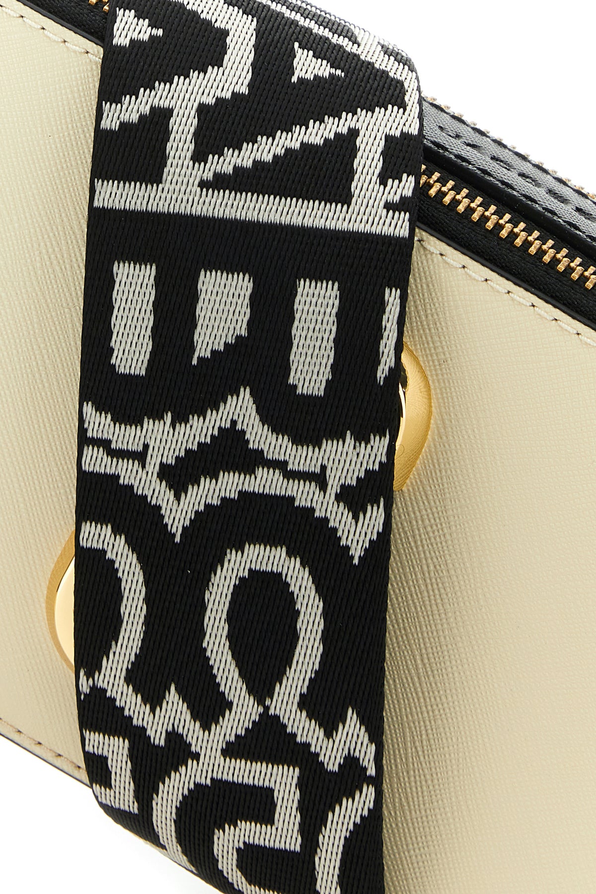 Crossbody bag realized in grained leather characterized by embossed logo at the top enriched by metal logoed detail at the front.