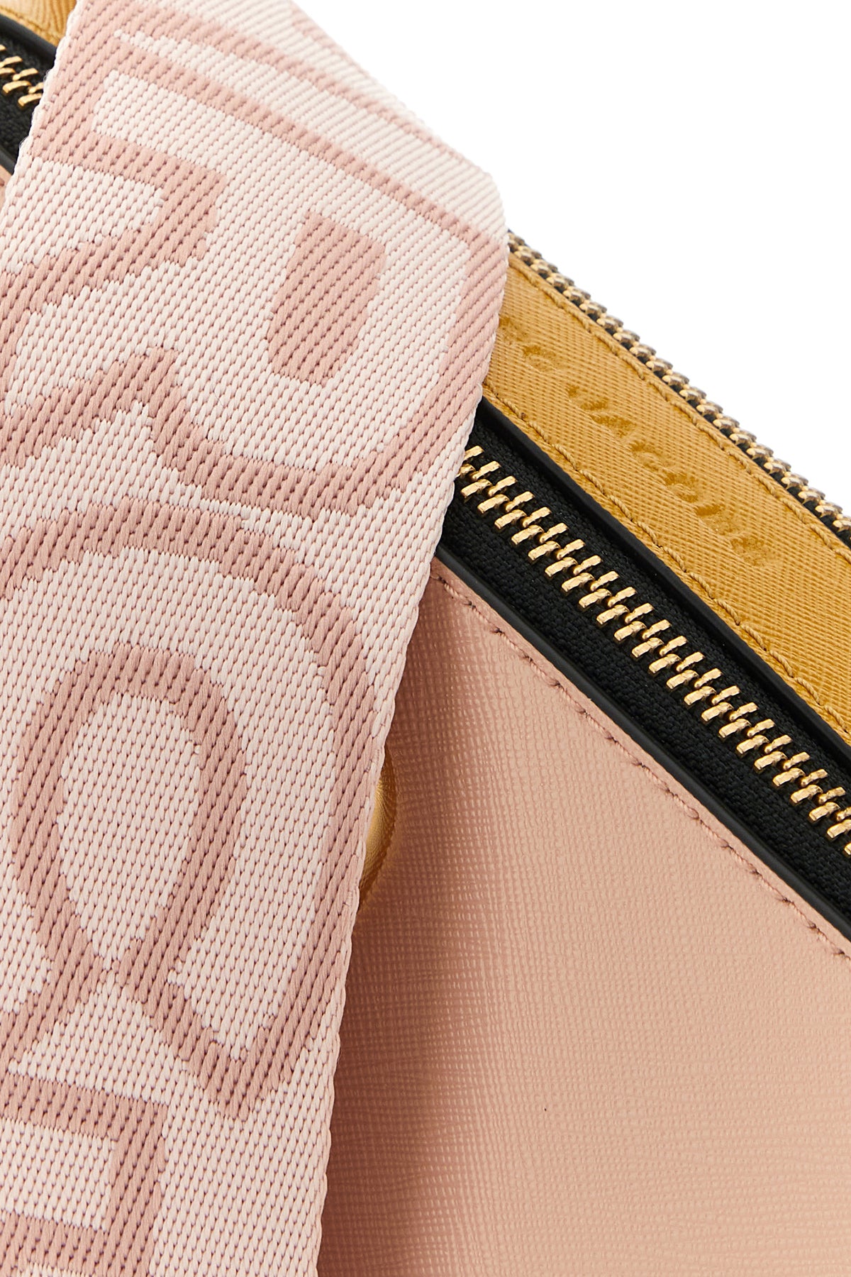 Crossbody bag realized in grained leather characterized by embossed logo at the top enriched by metal logoed detail at the front.