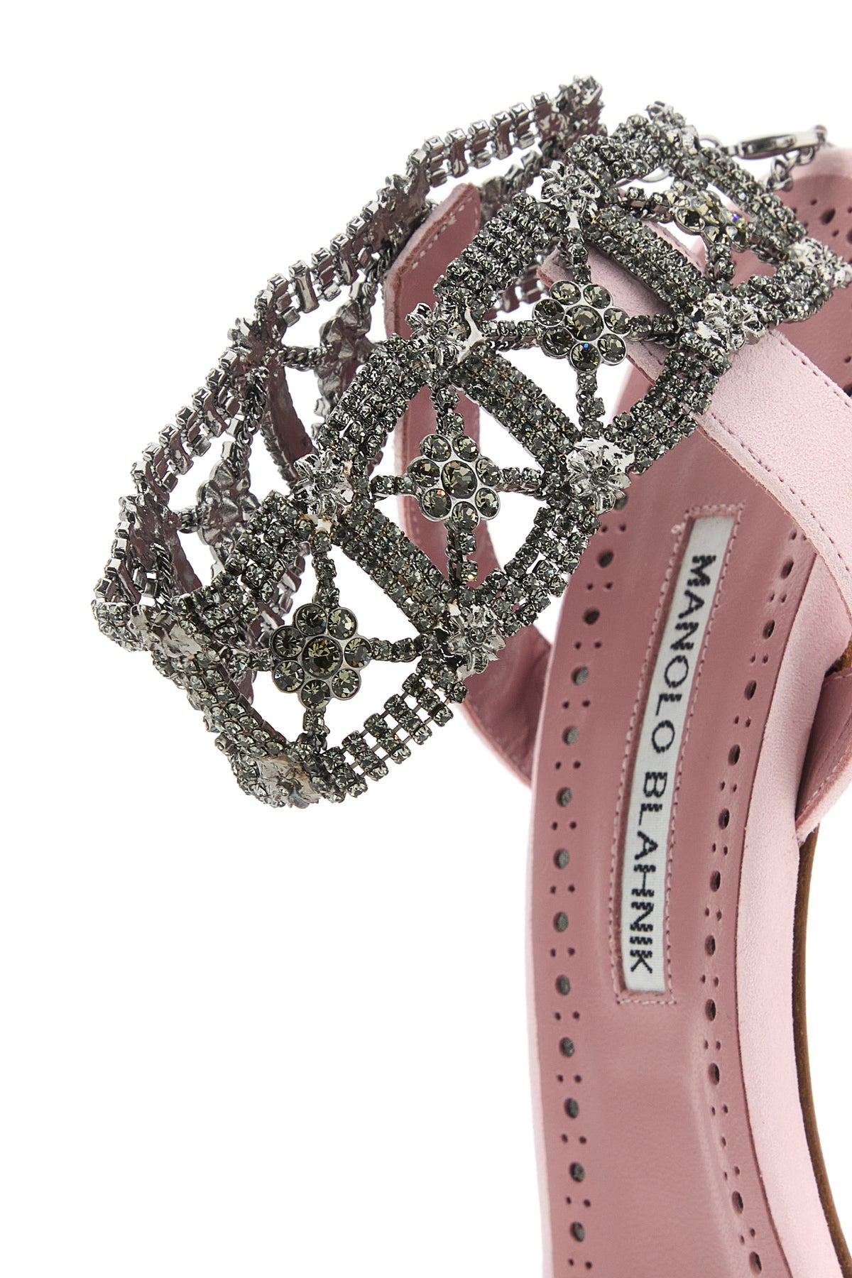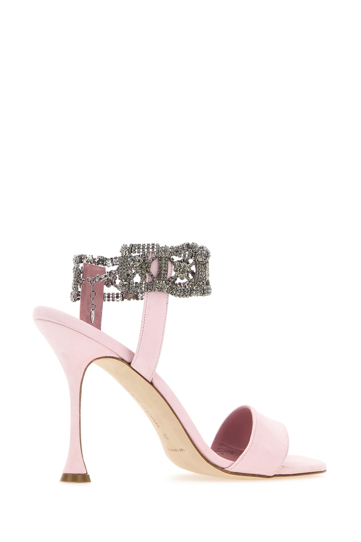 Sandals realized in suede enriched by peculiar jewel adjustable ankle strap closure.