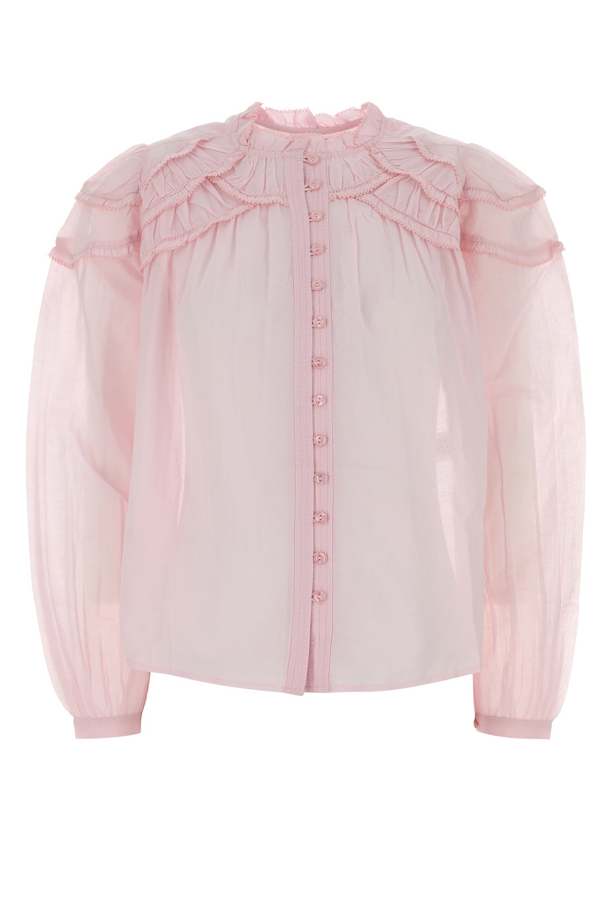 Shirt realized in cotton blend enriched by contrasting ruffles at the top.