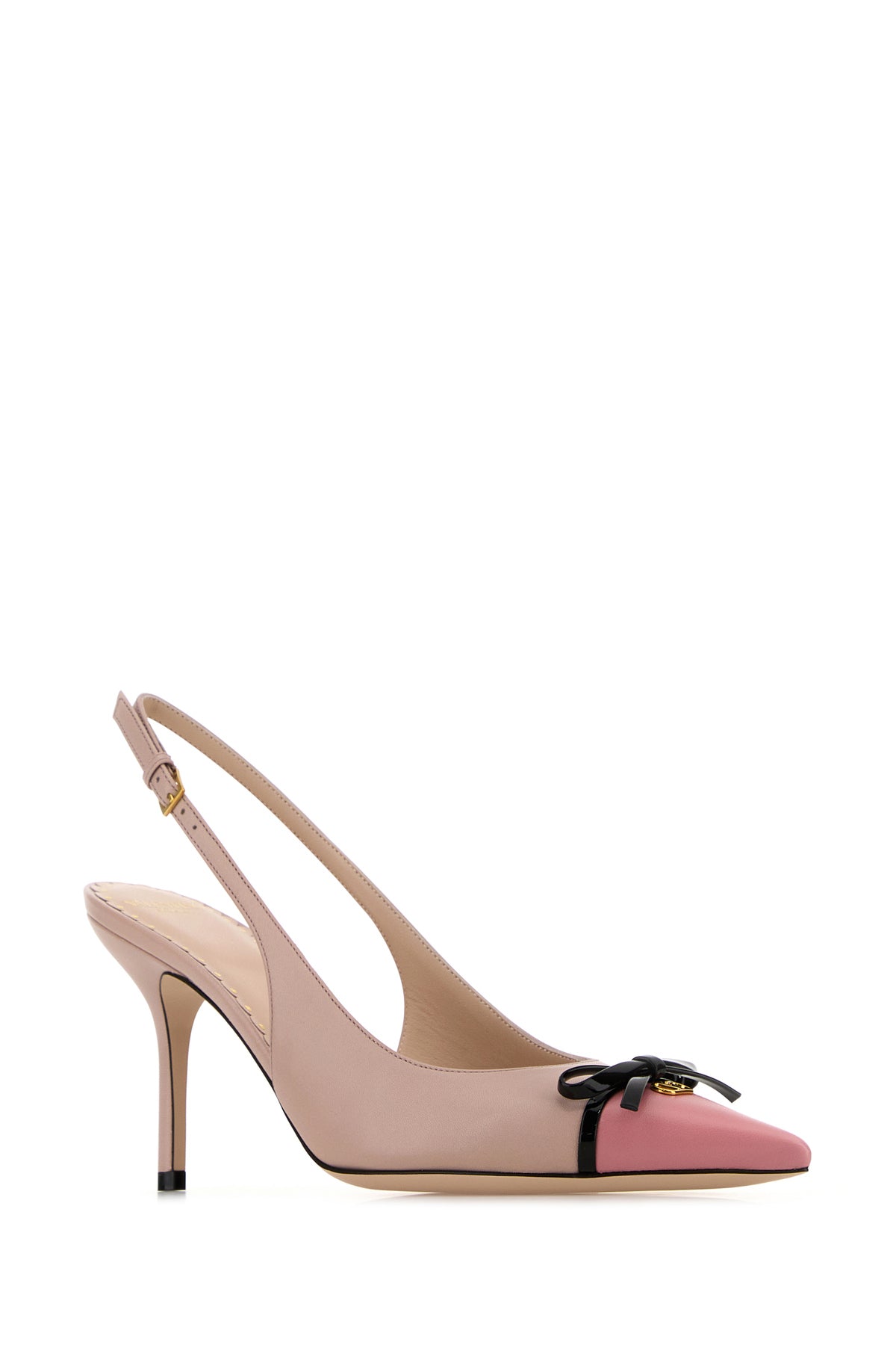 Slingback realized in smooth leather enriched by metal VLogo detail and contrasting decorative bow at the front.