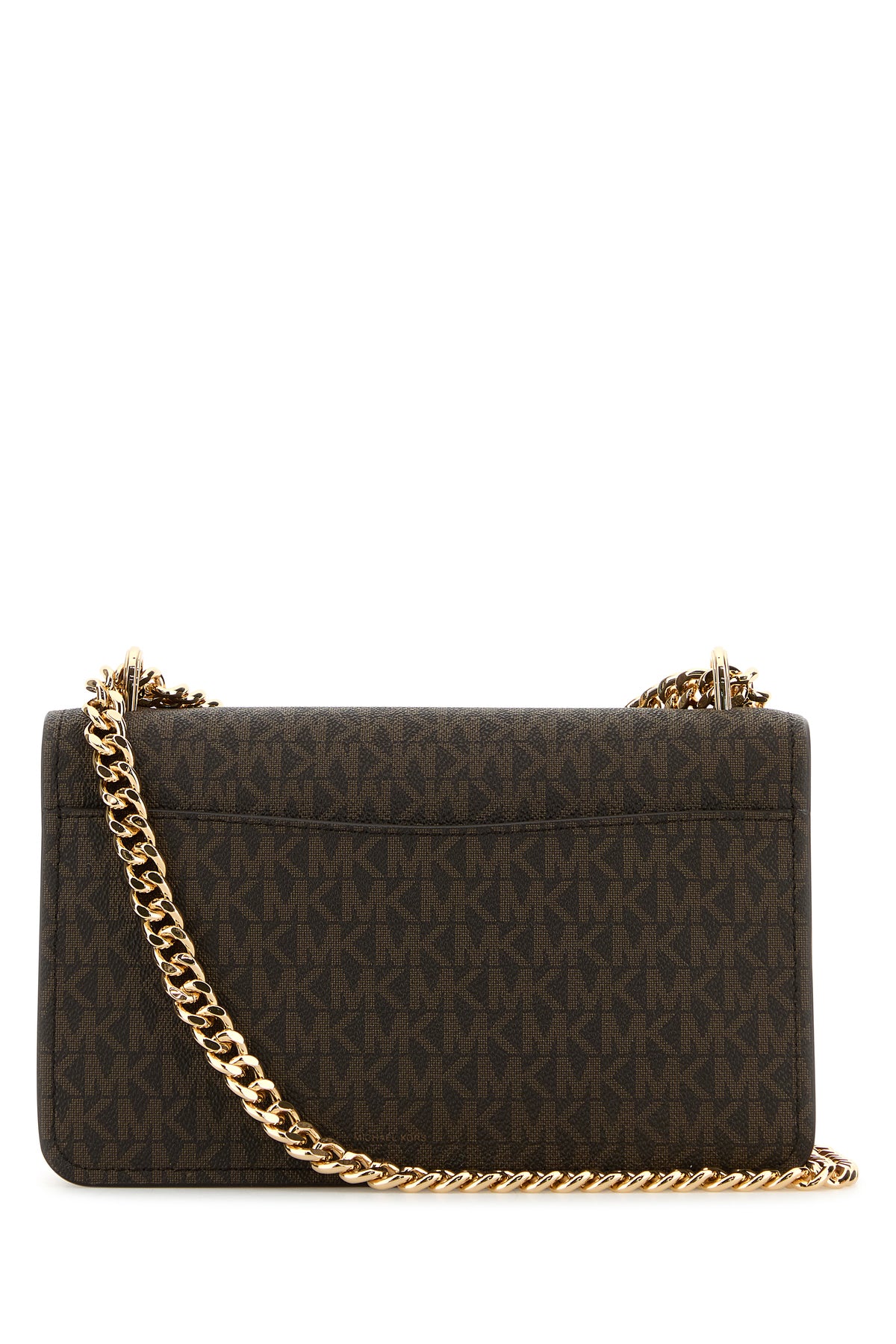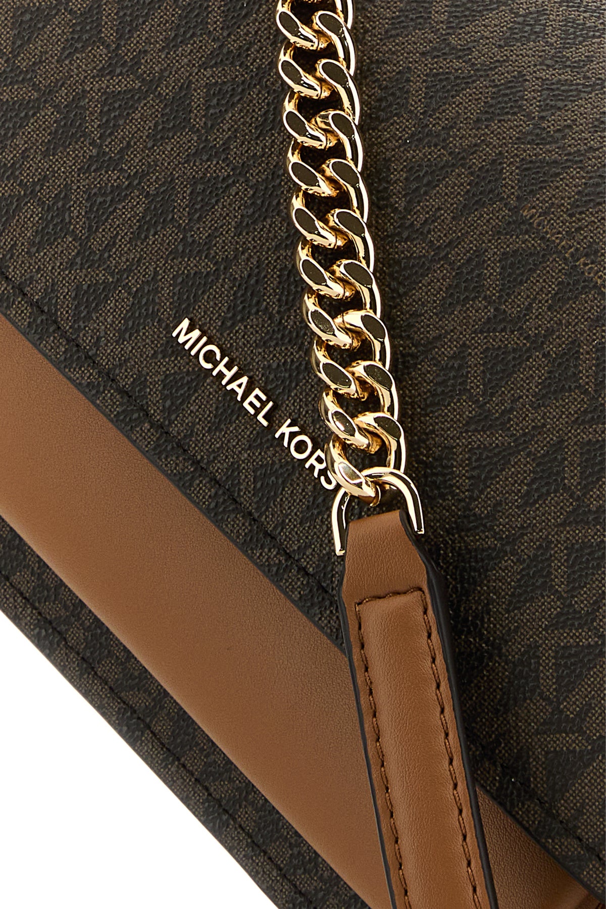 - Metal chain shoulder strap with tonal leather shoulder pad that can be worn single or double