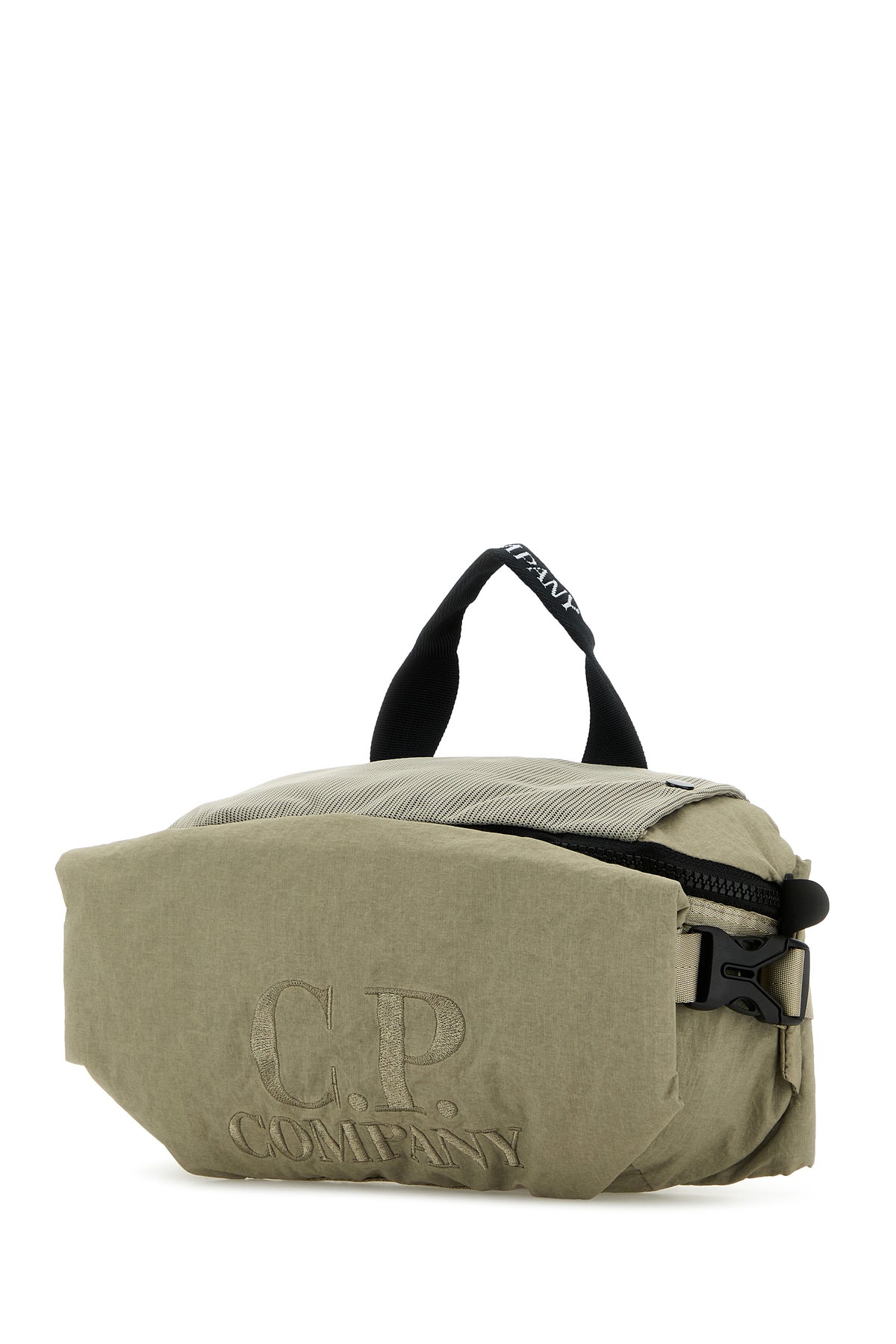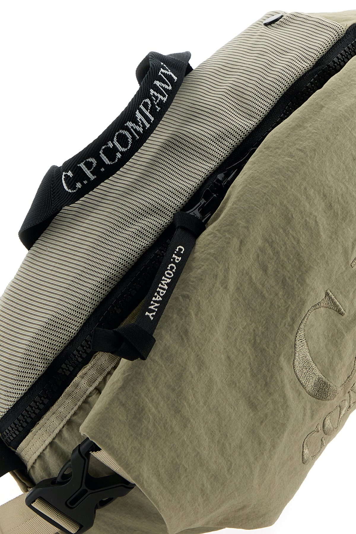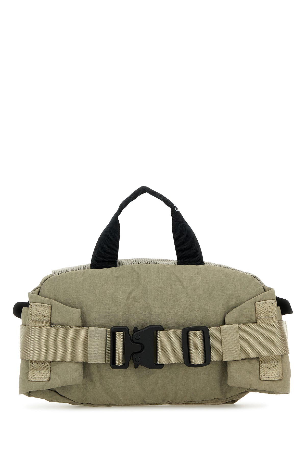 Belt bag realized in nylon characterized by tonal logoed embroidery at the front.