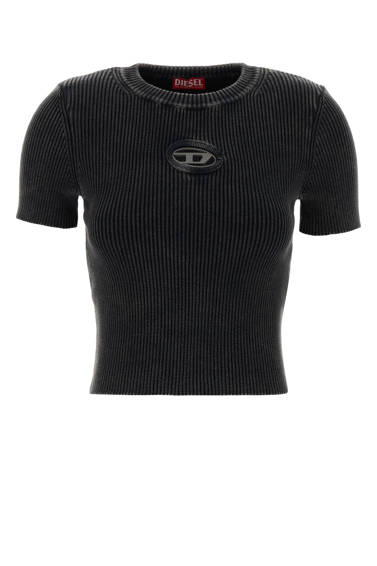 T-shirt realized in ribbed pure cotton enriched by D metal detail on the chest.