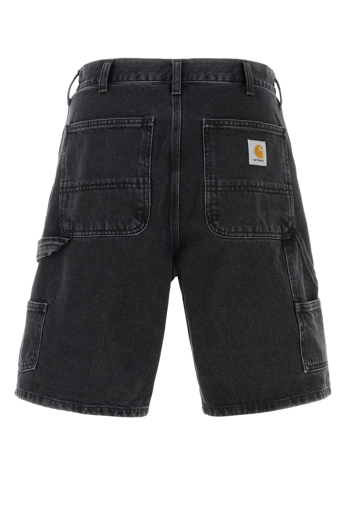 Bermuda shorts realized in stonewashed pure cotton denim enriched by contrasting logged label at the back.