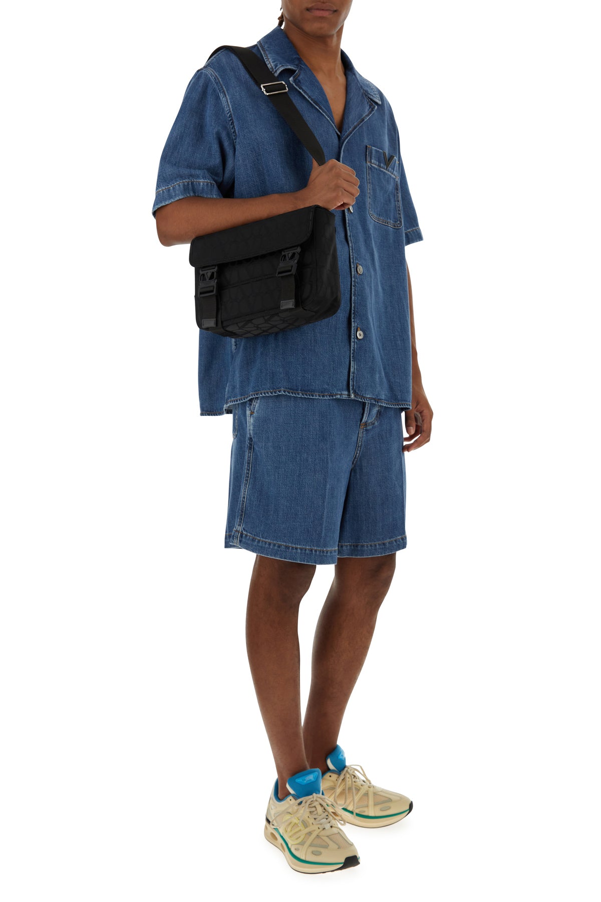 Crossbody bag realized in Toile Iconographe characterized by a slit pocket at the back.