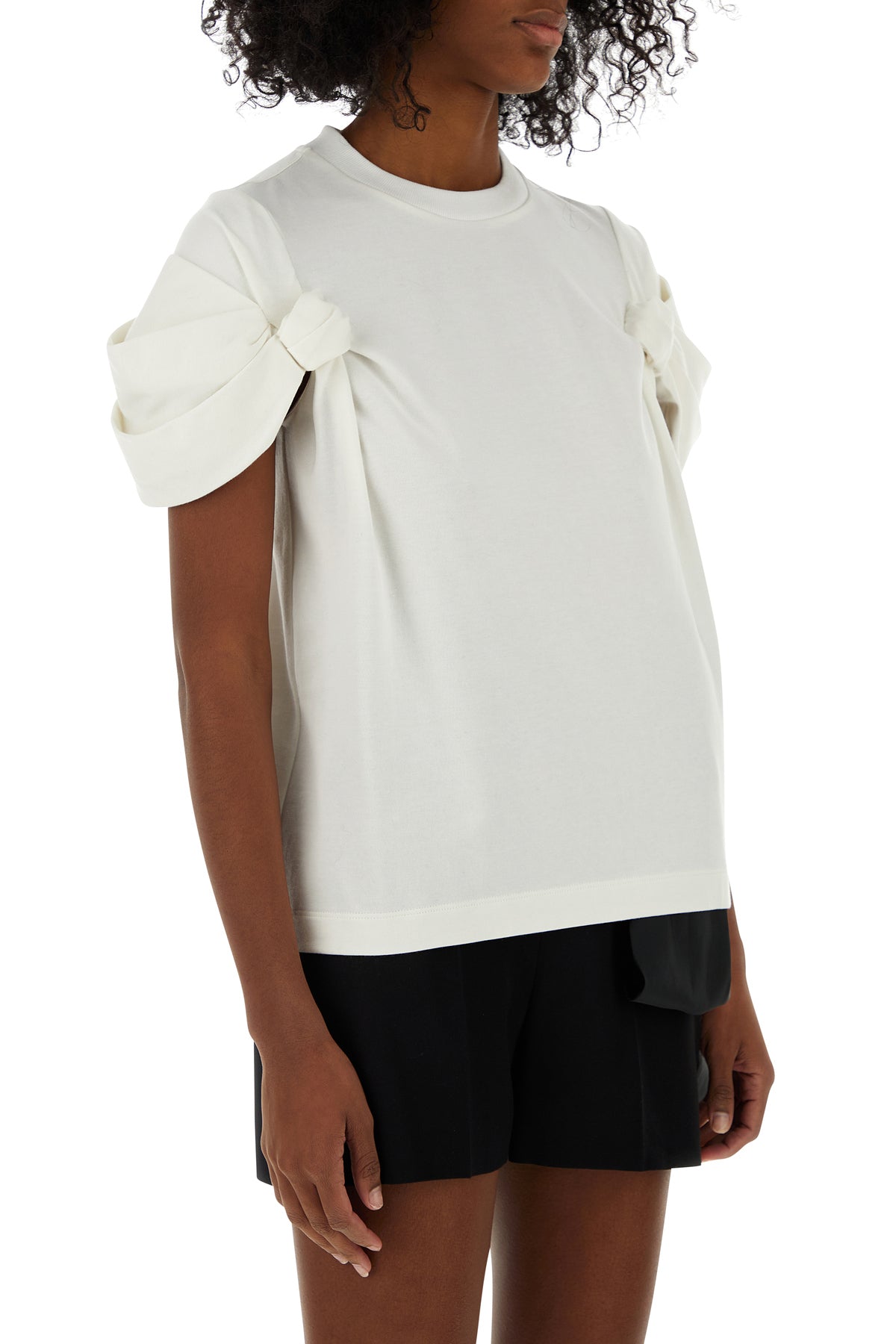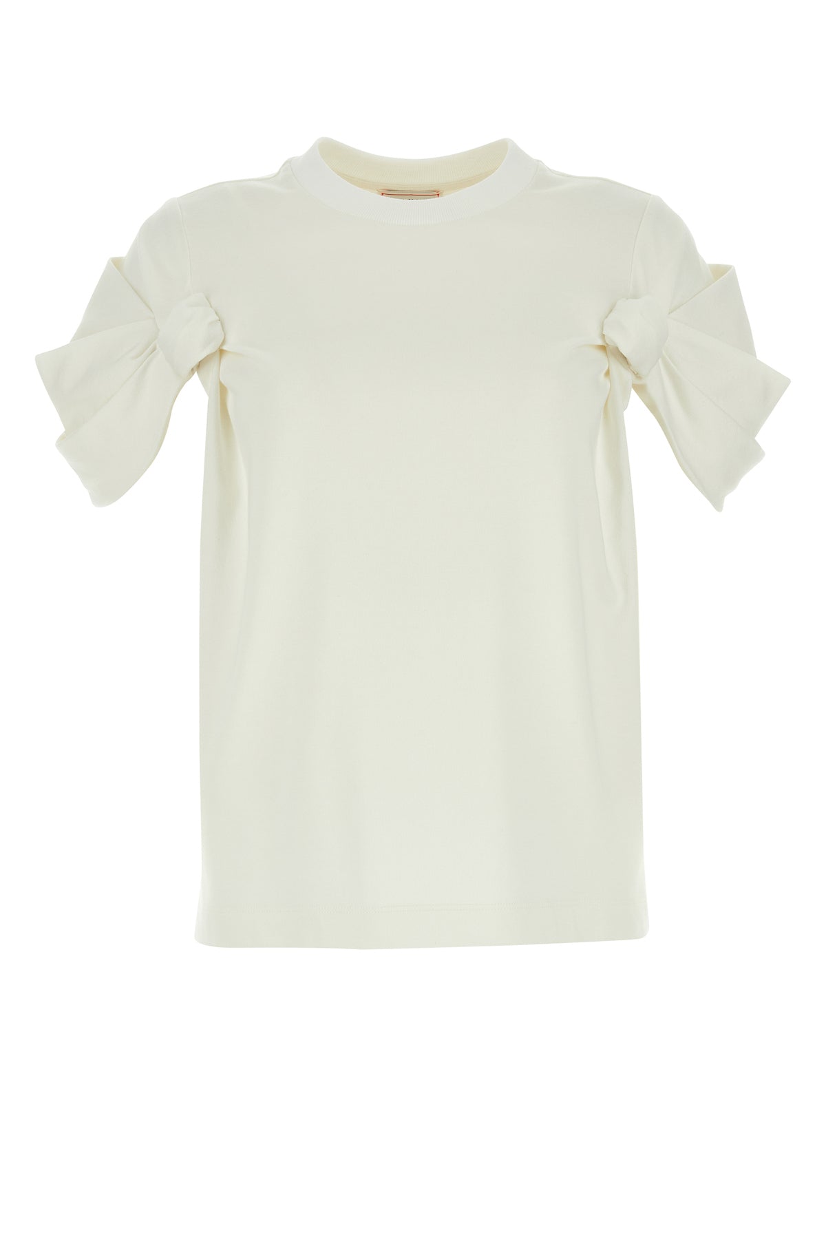 T-shirt realized in pure cotton characterized by tonal logoed embroidery at the back.