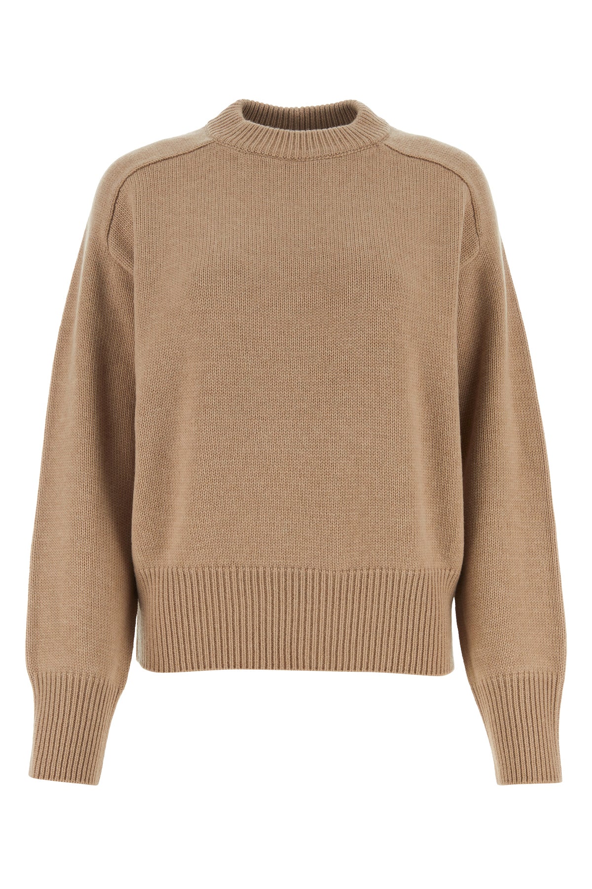 Sweater realized in pure wool enriched by contrasting logoed patch at the back.