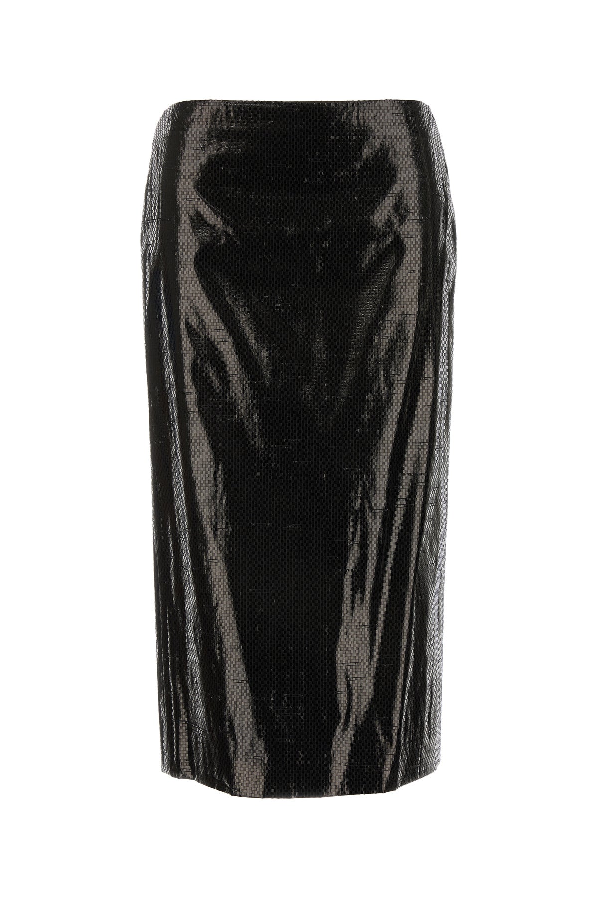 Fitted skirt realized in canvas characterized by peculiar checkered embroidery on the entire surface.