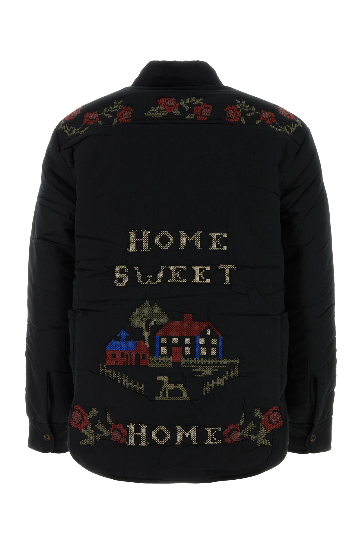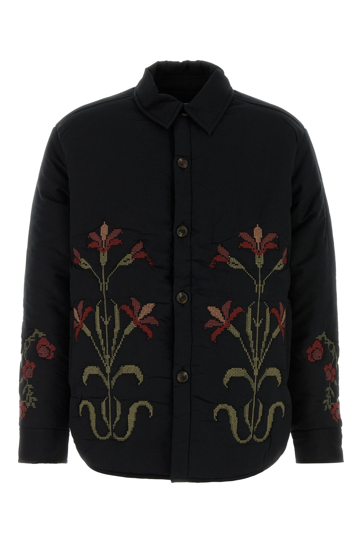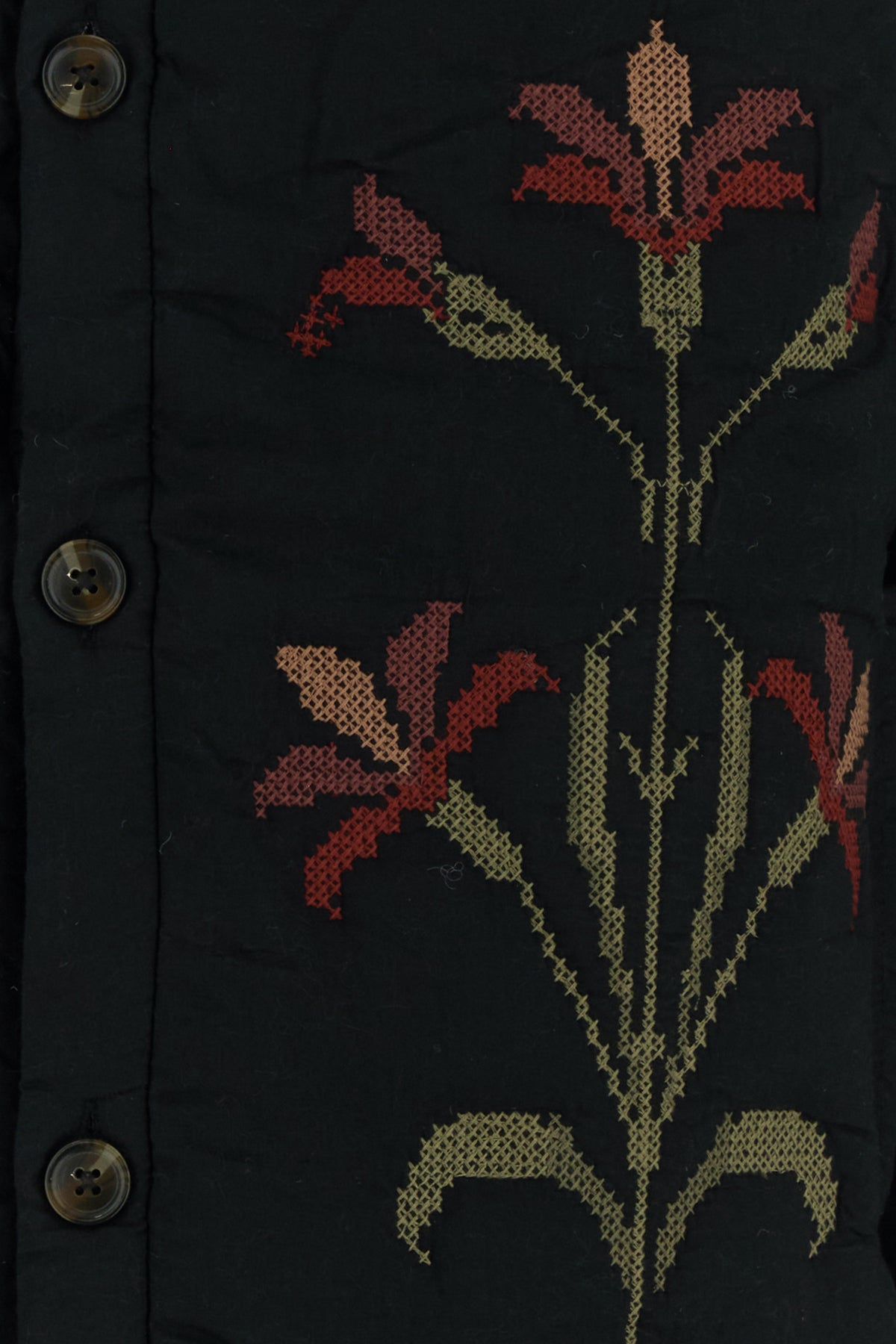 Padded jacket realized in pure cotton characterized by peculiar embroideries on the entire surface.