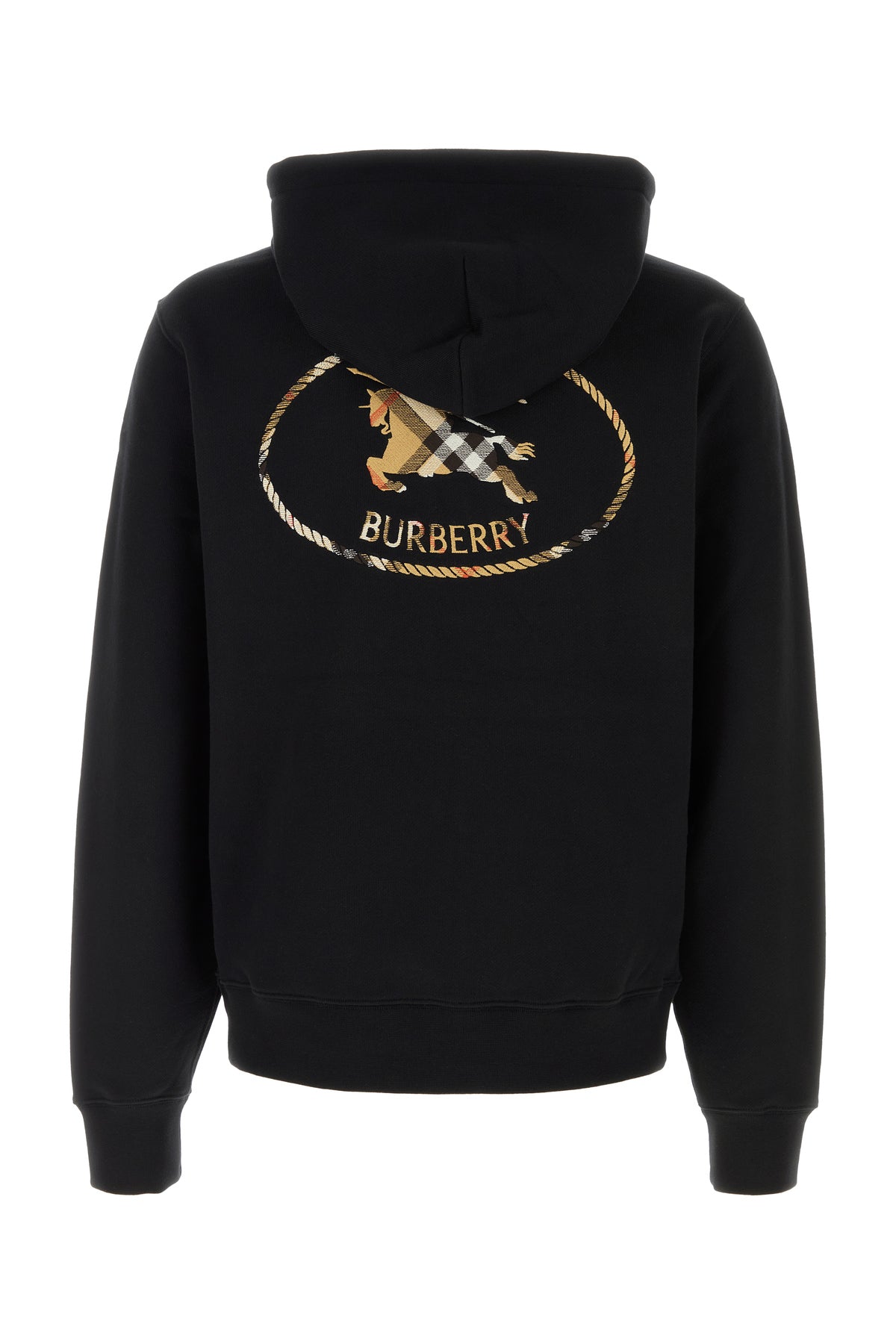 Sweatshirt realized in pure cotton characterized by Burberry Check motif Equestrian Knight embroidery on the chest and at the back.
