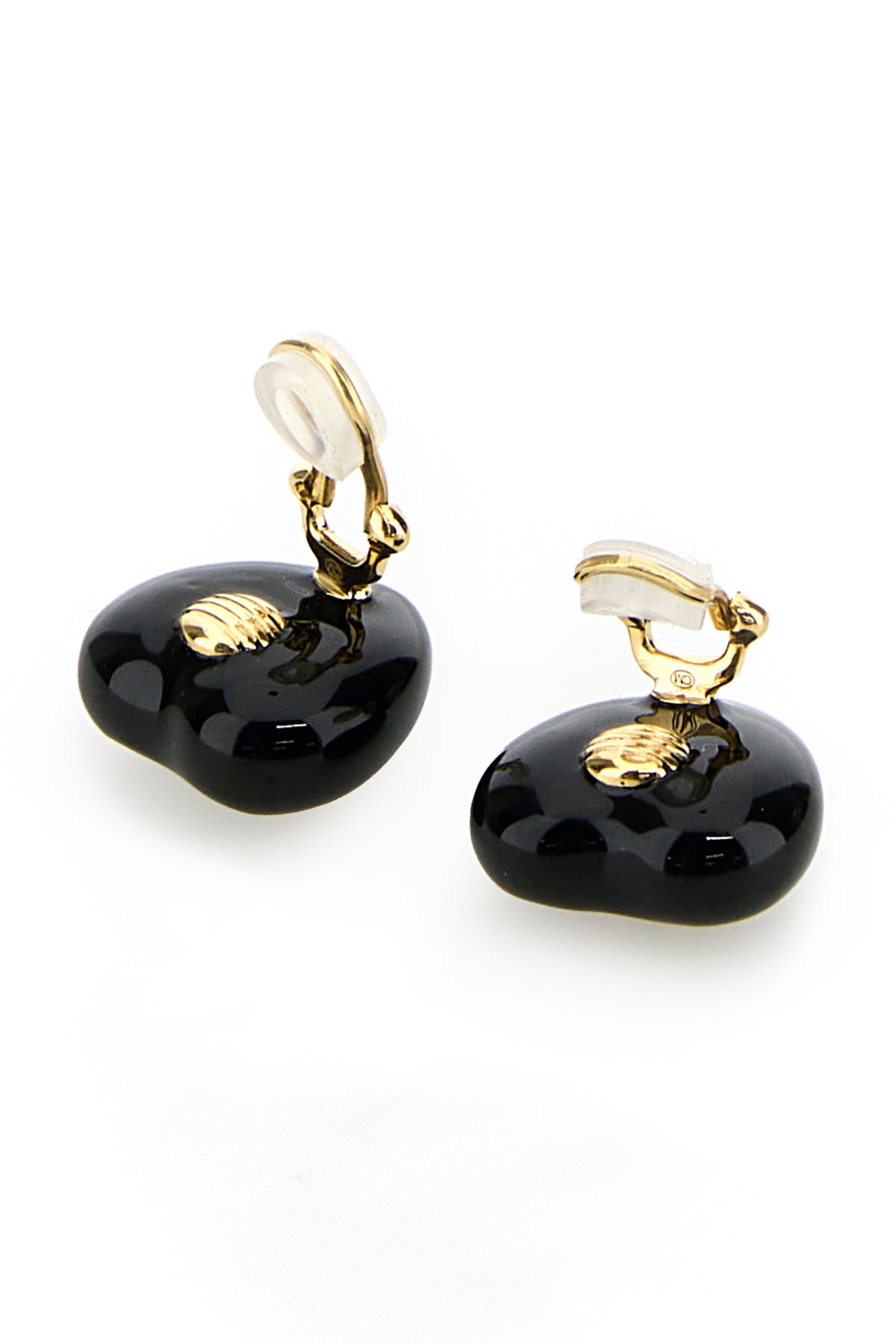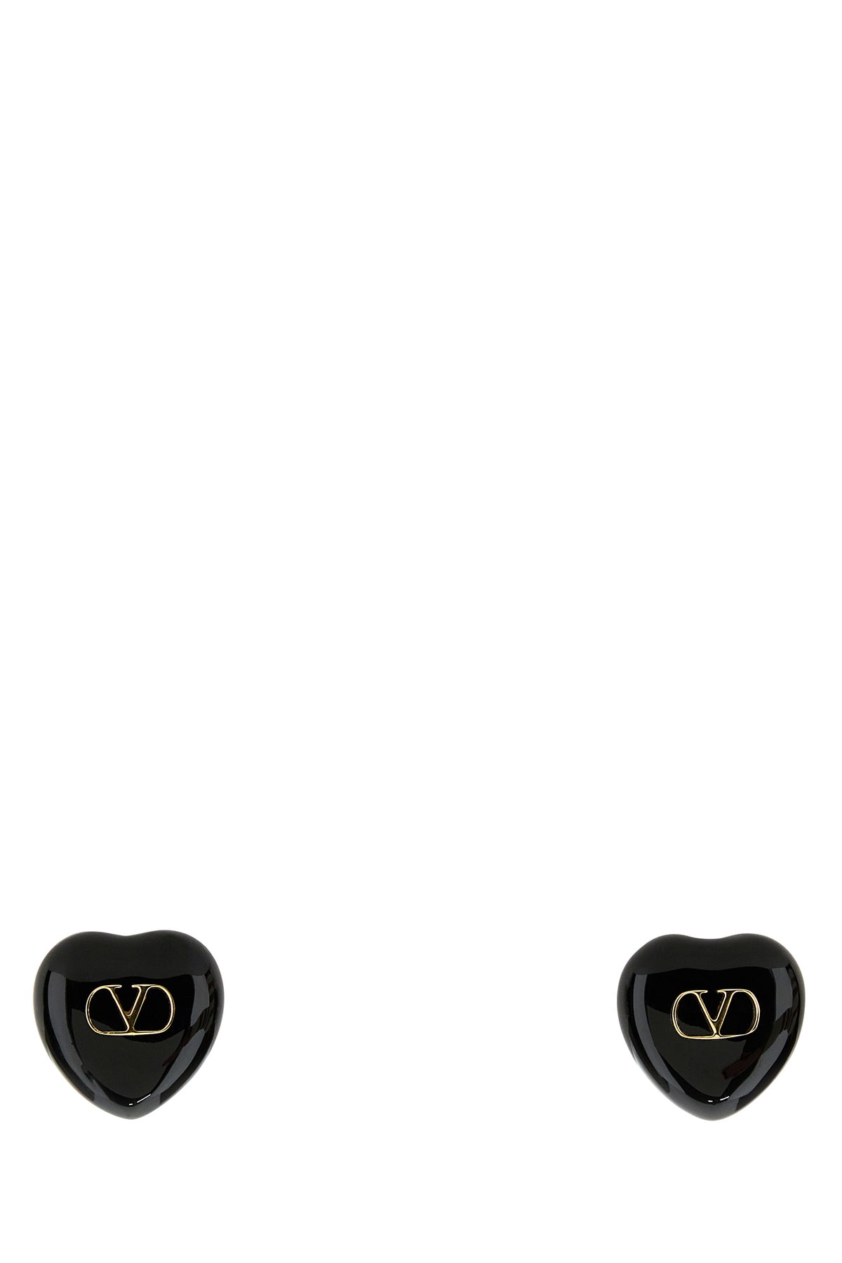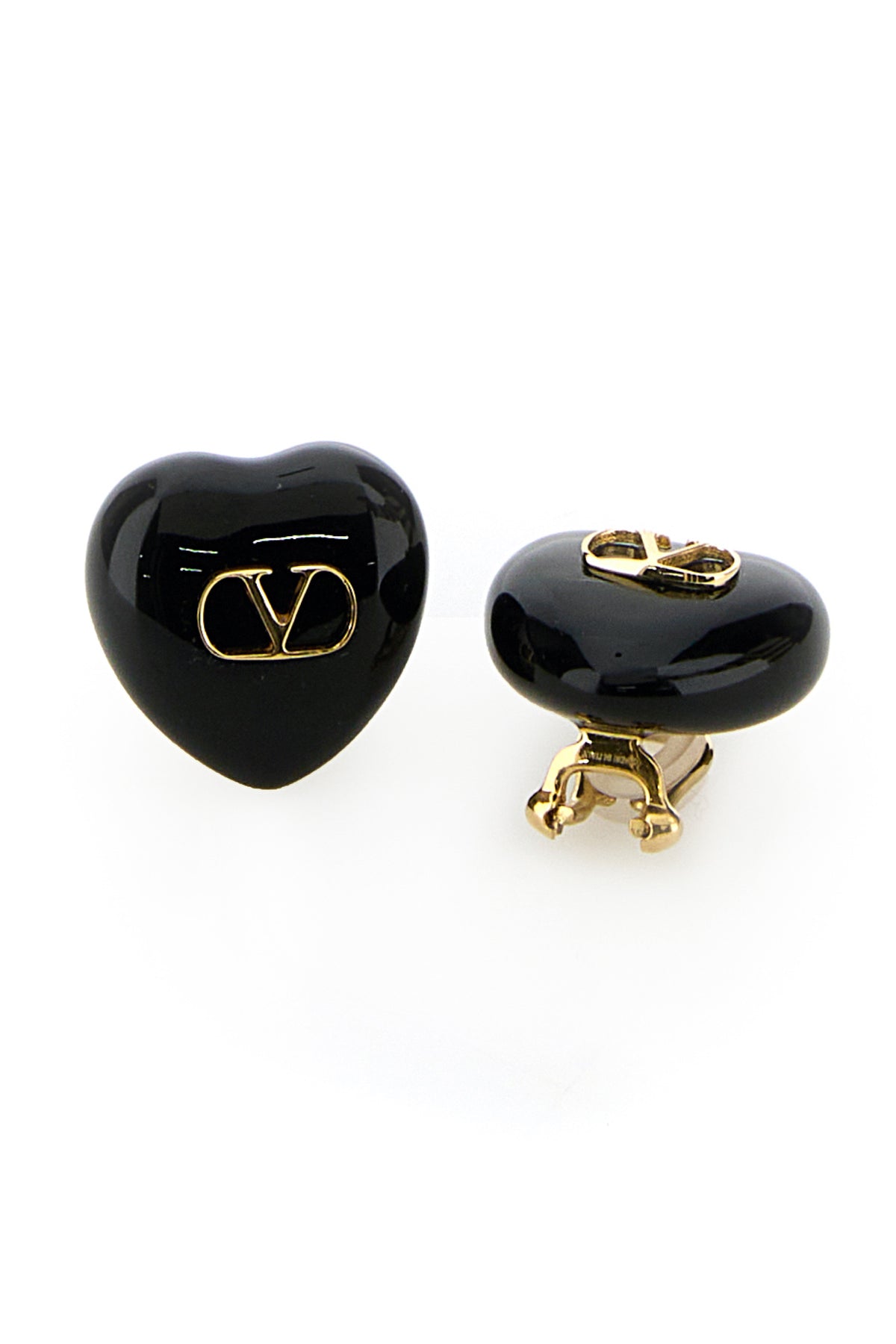 Heart-shaped earrings realized in enamel enriched by metal VLogo detail.