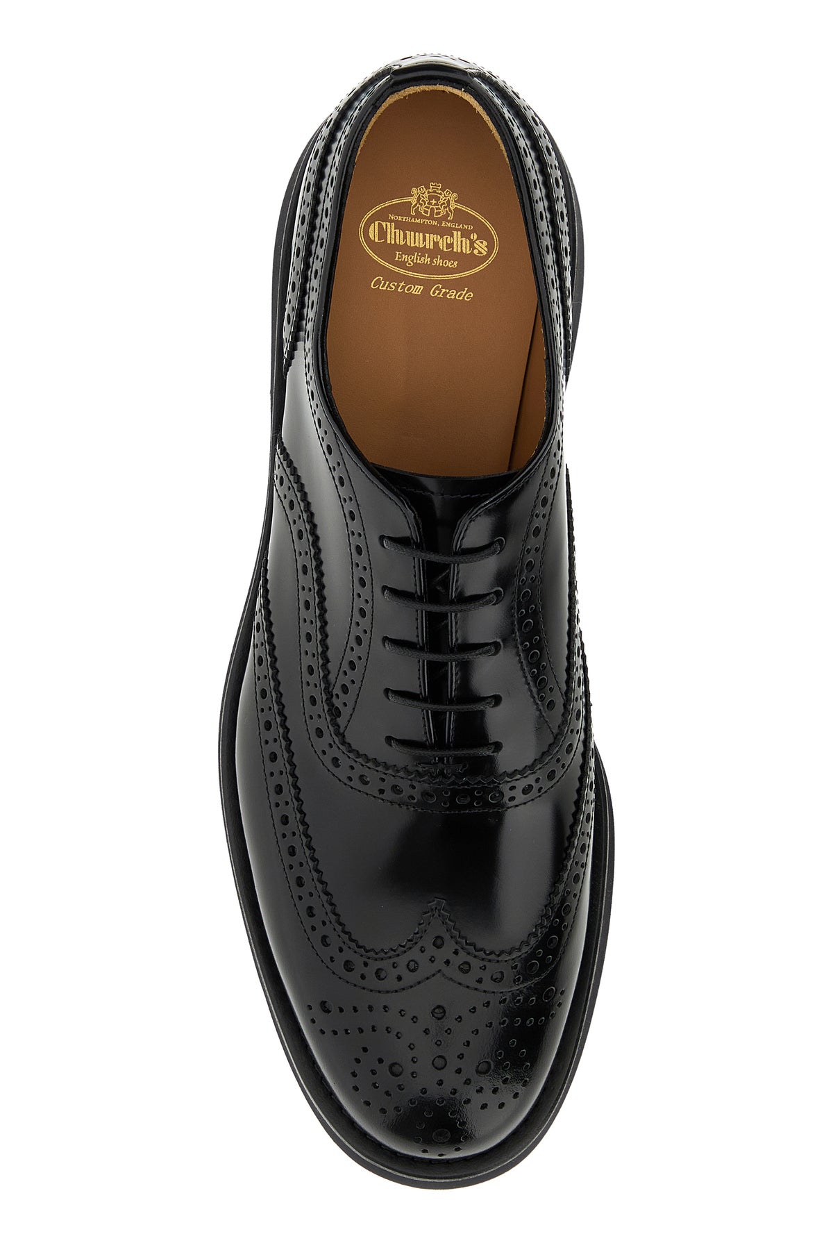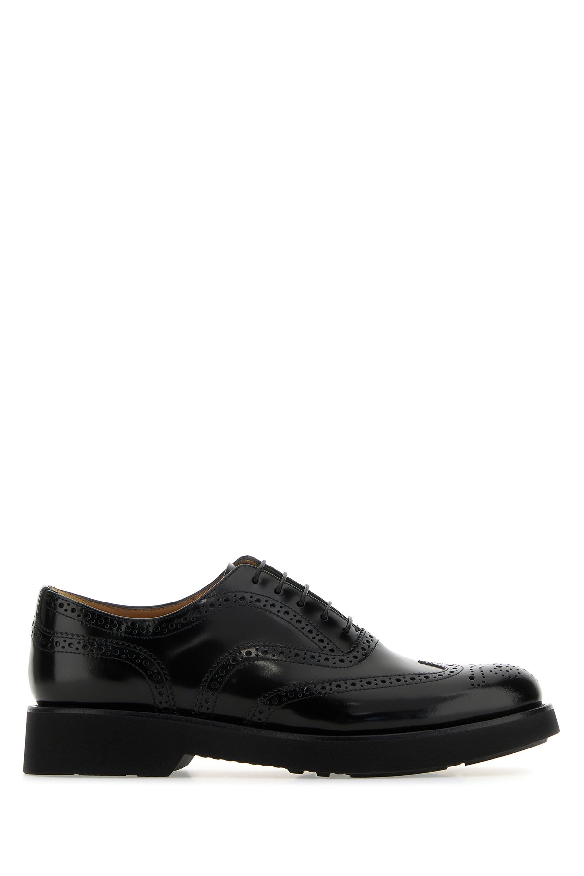 Lace-up shoes realized in polished finish smooth leather characterized by full-brogue embellishment with micro studs on the entire surface.