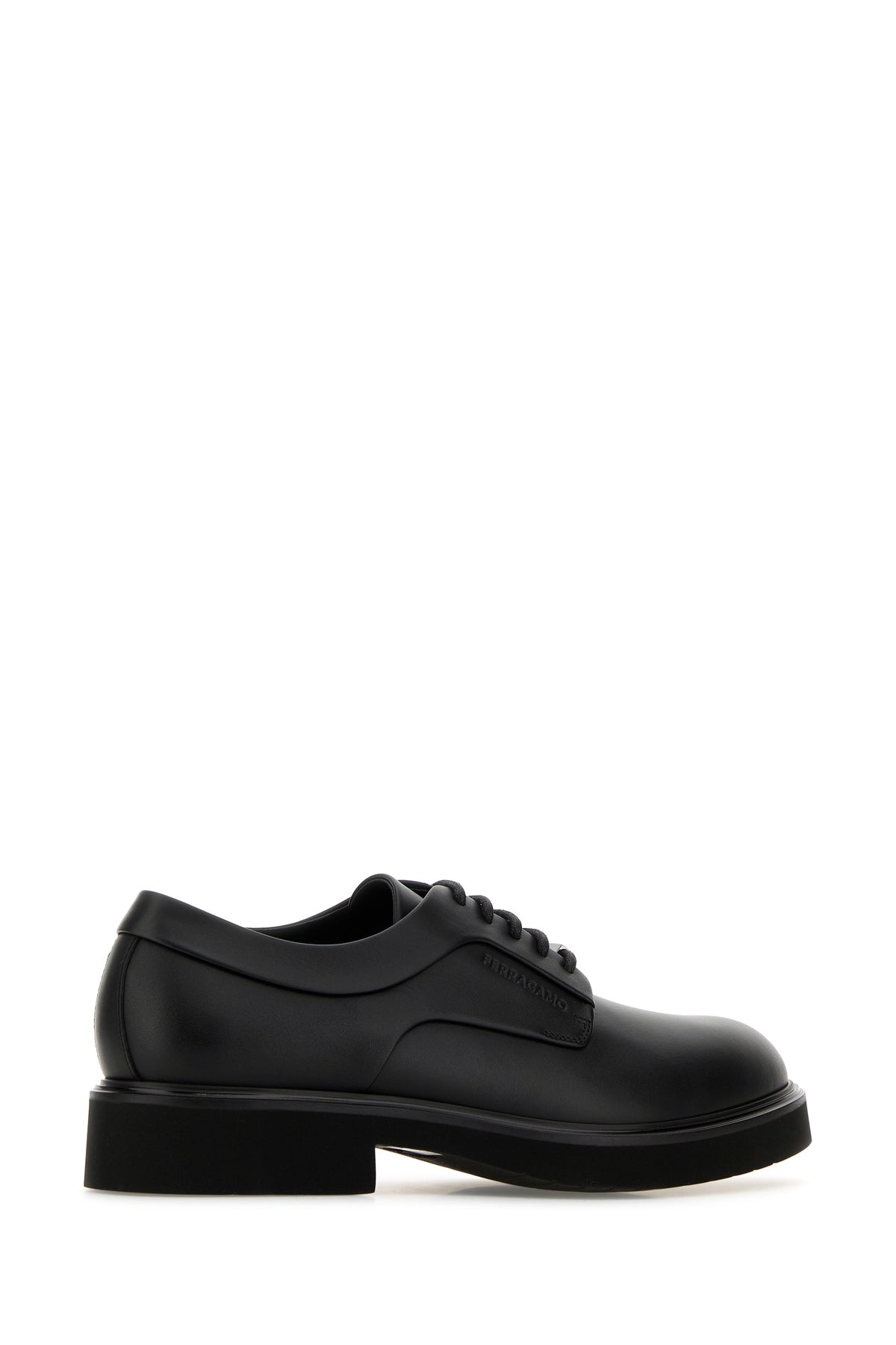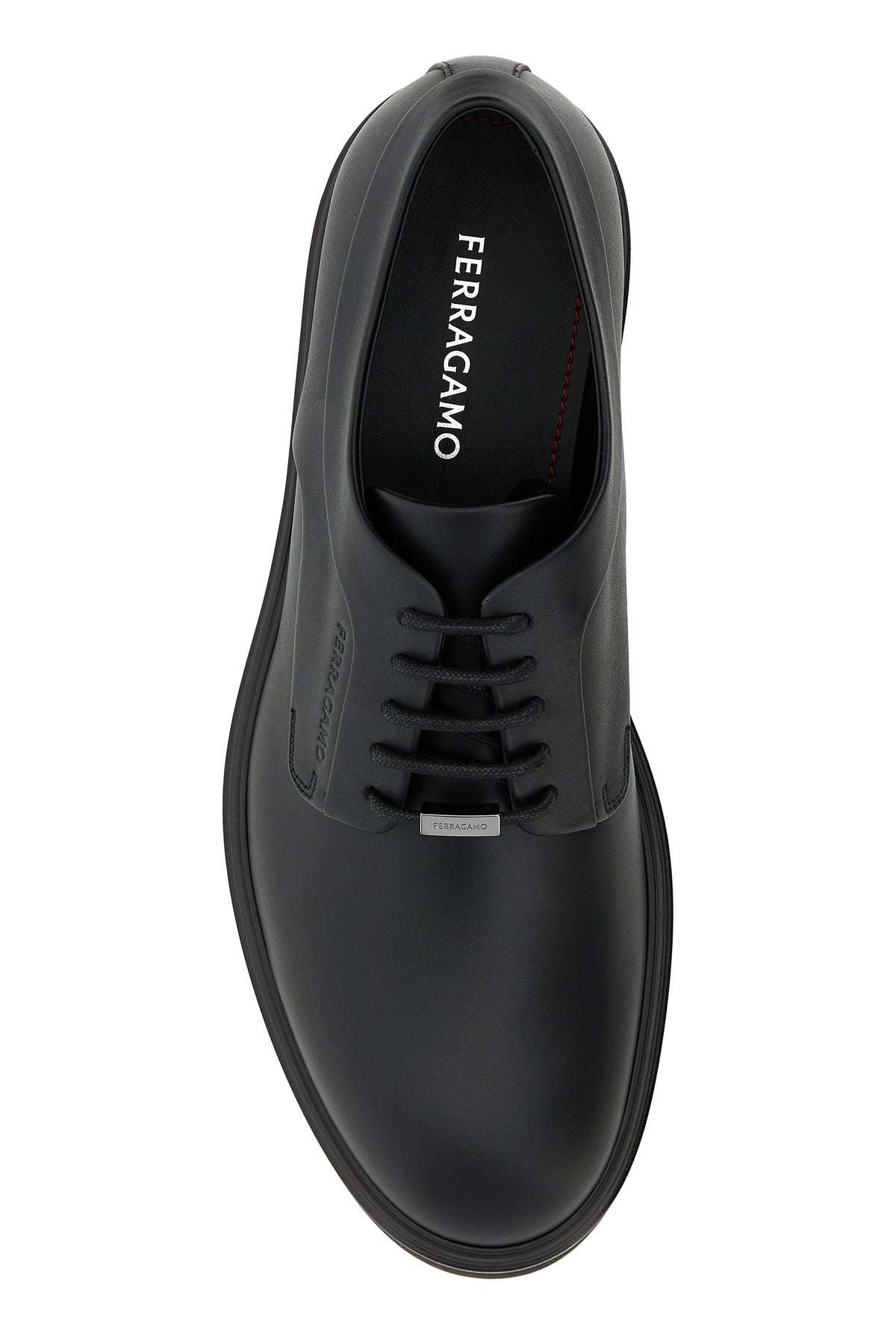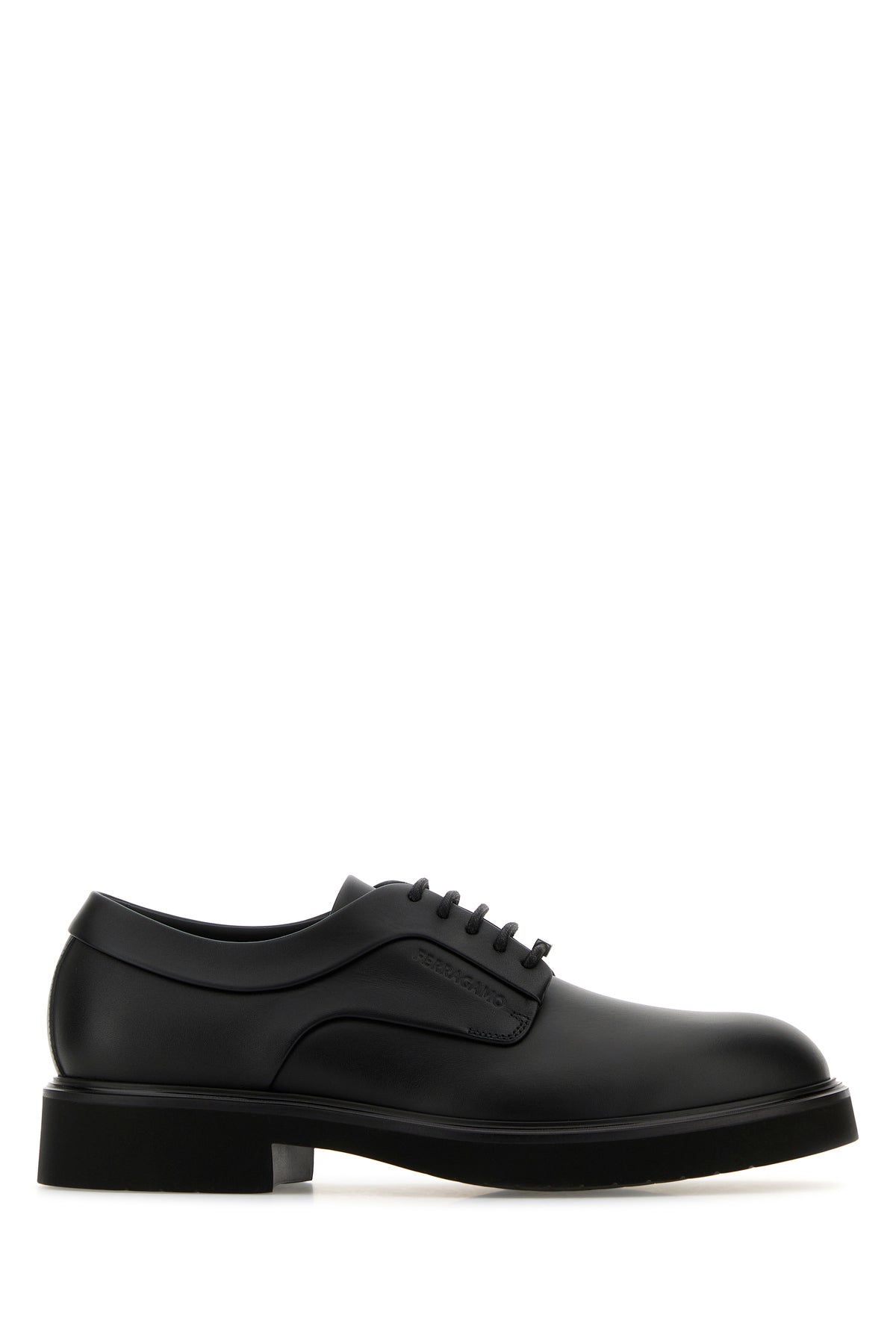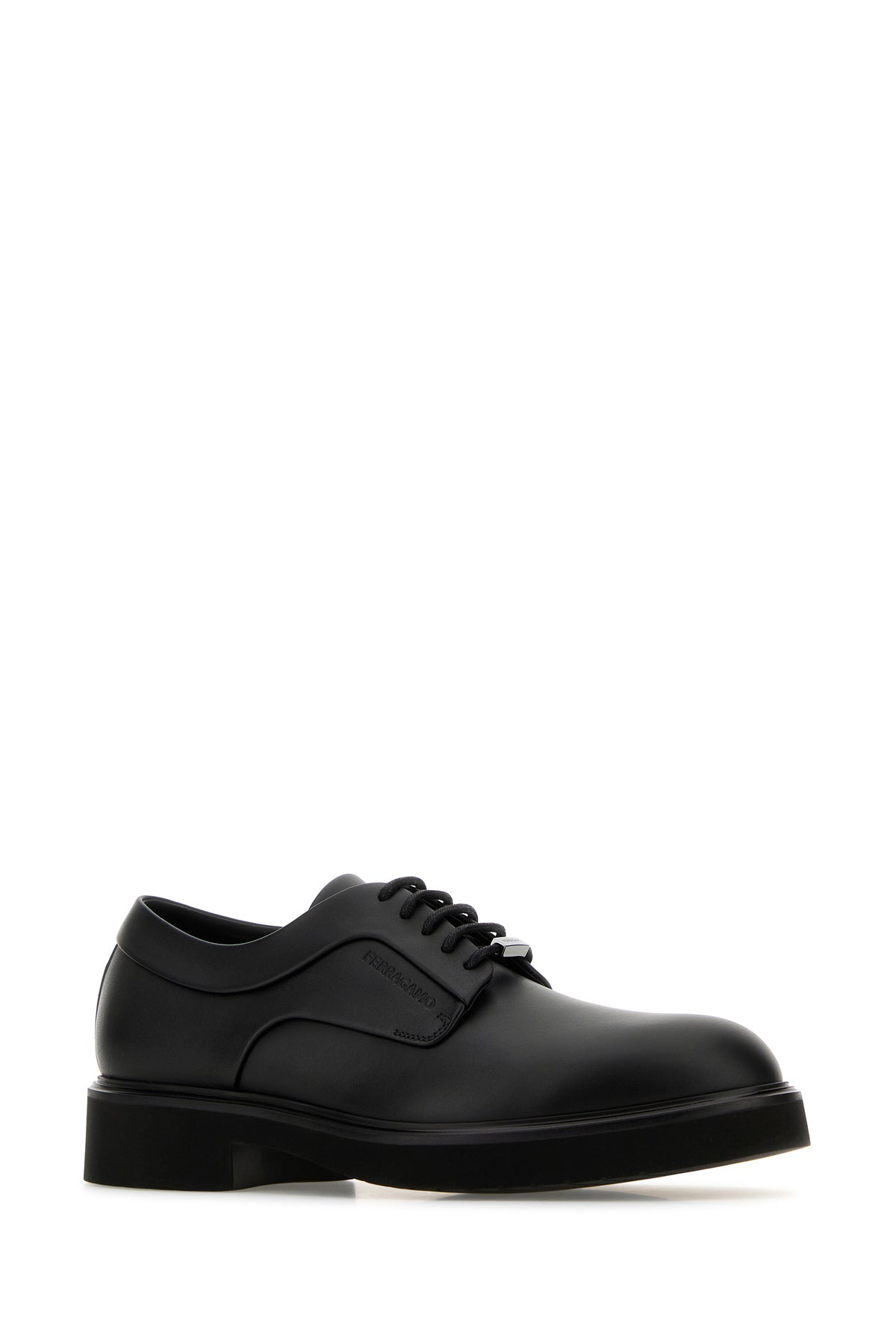 Lace-up shoes realized in smooth calf leather enriched by logoed metal plate at the front.