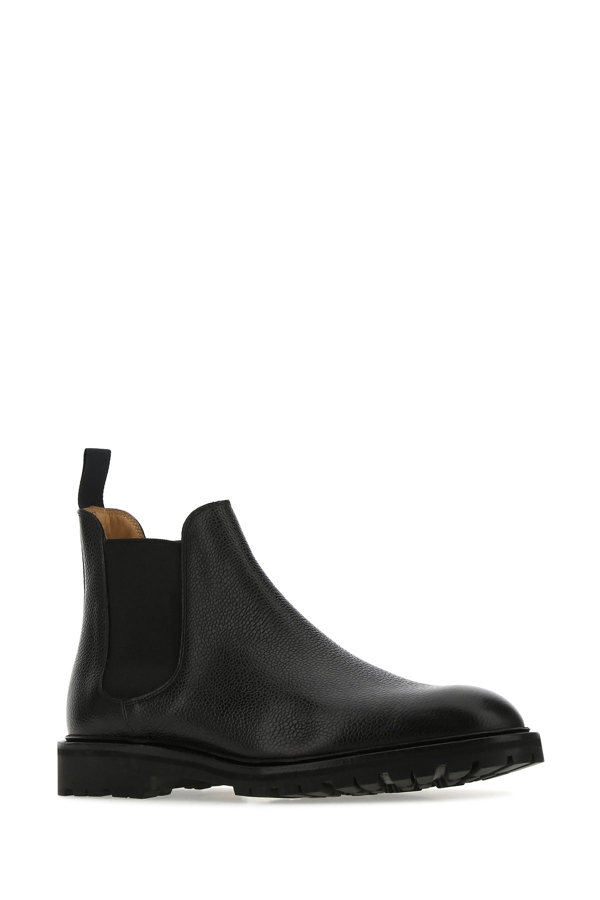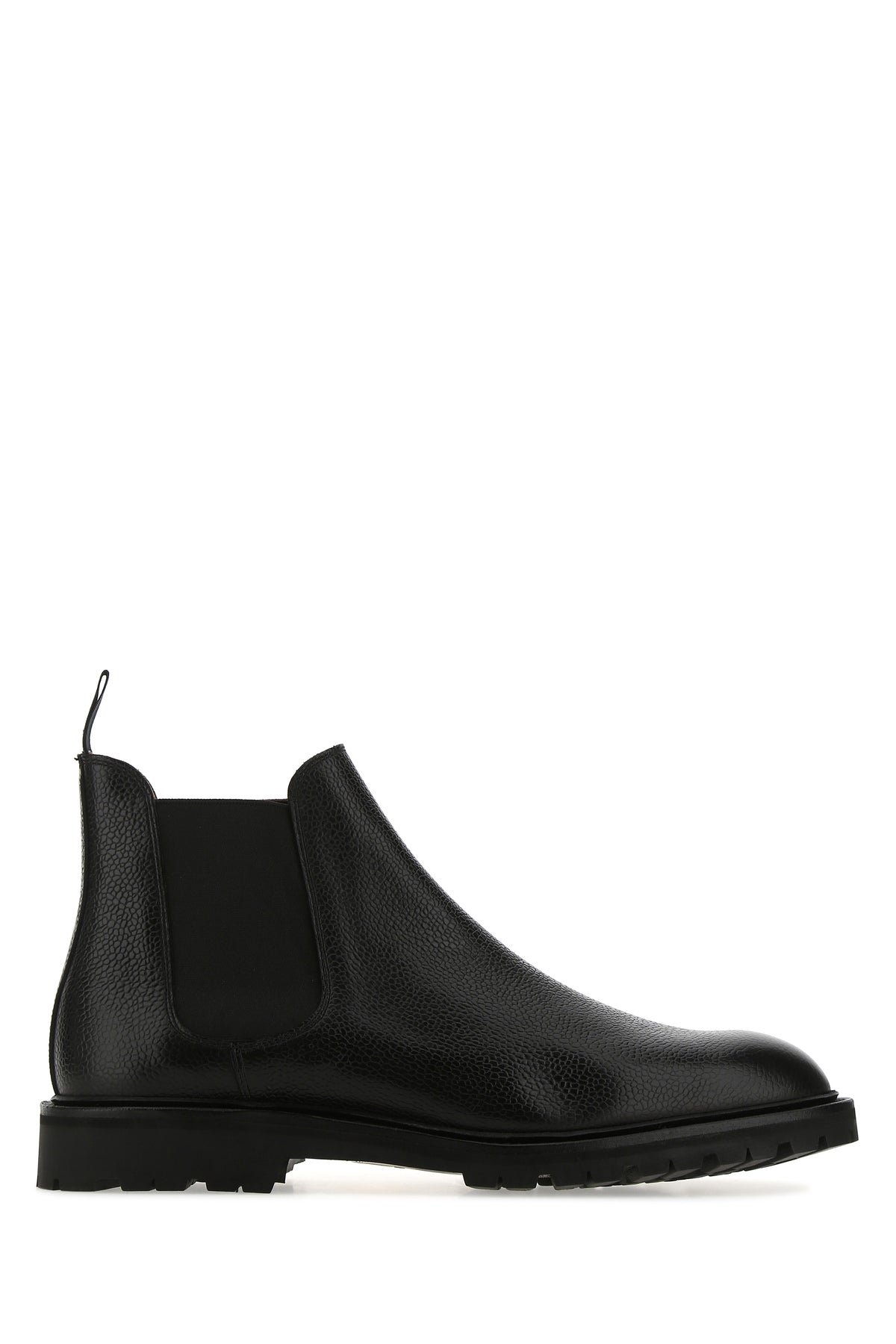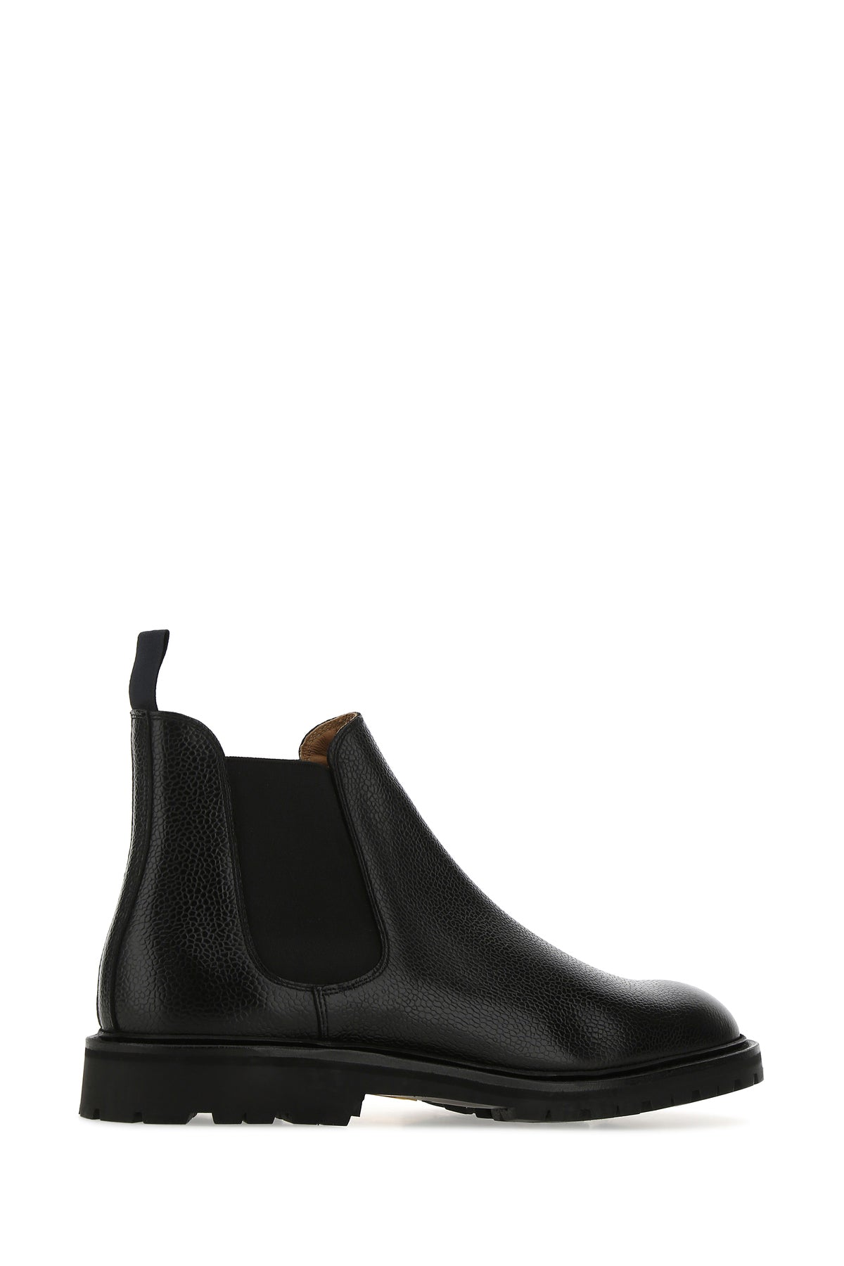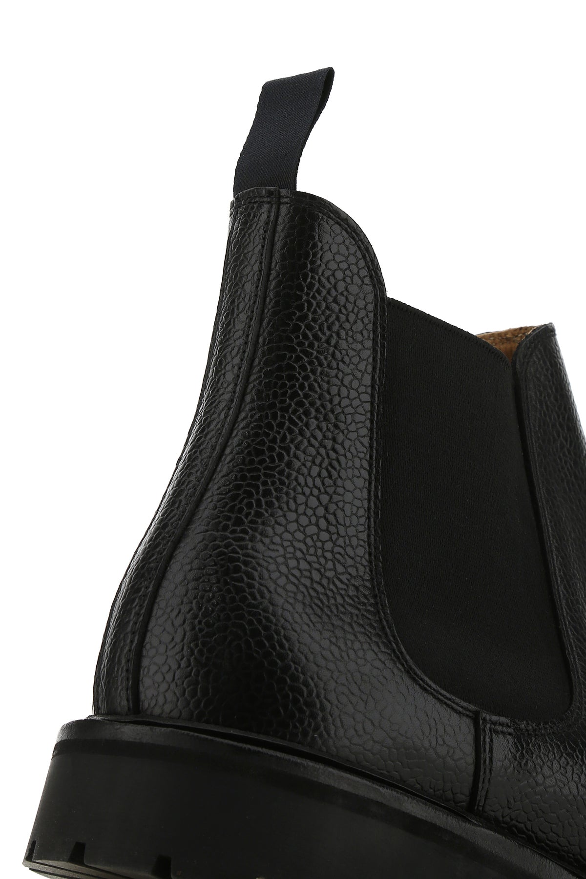 Ankle boots realized in pebble leather with tonal stretch fabric inserts.