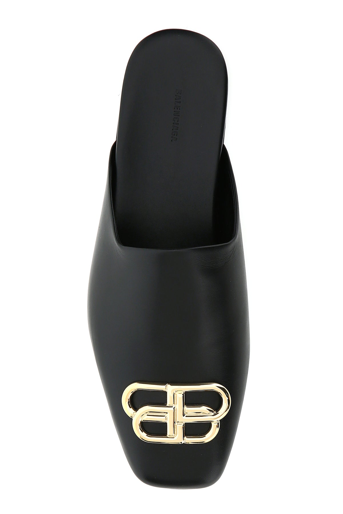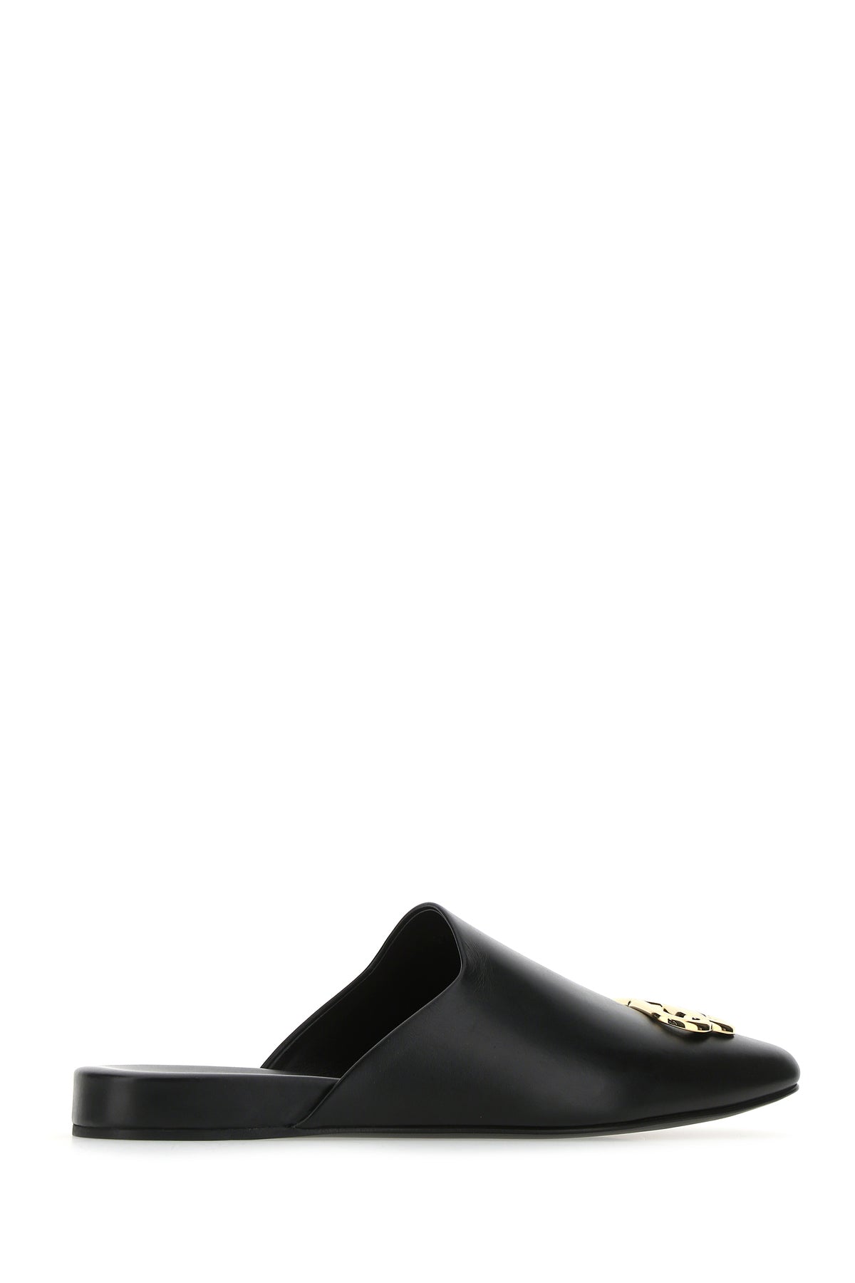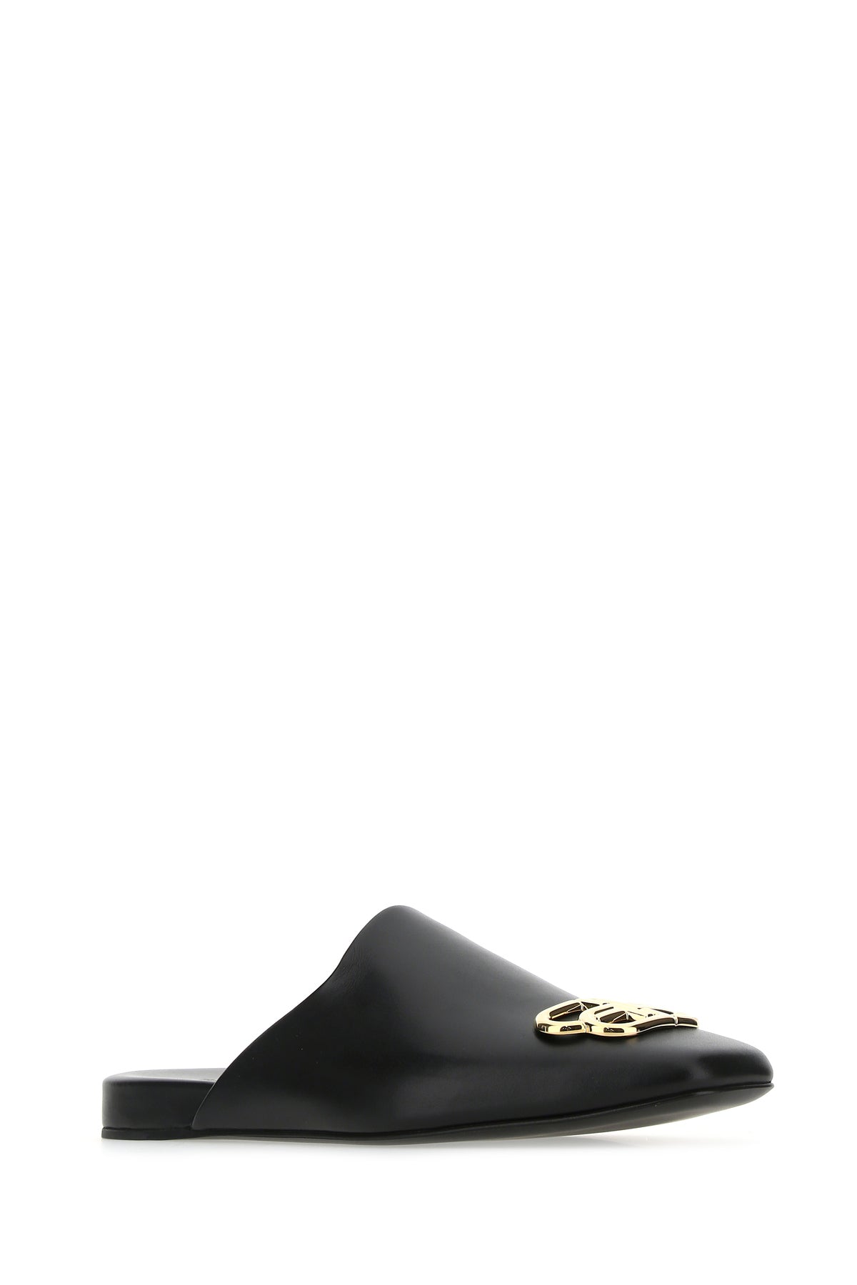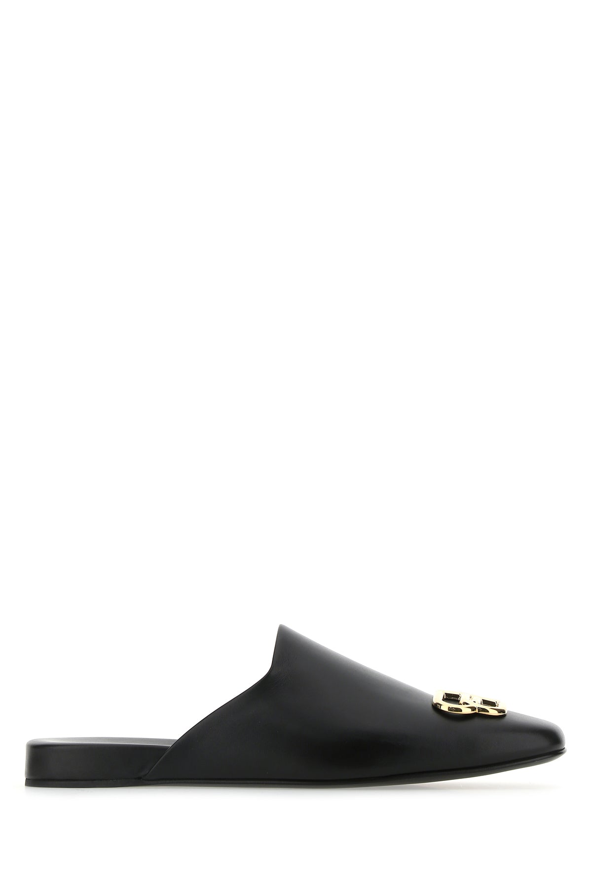Slippers realized in smooth leather enriched by metal BB detail at the front.