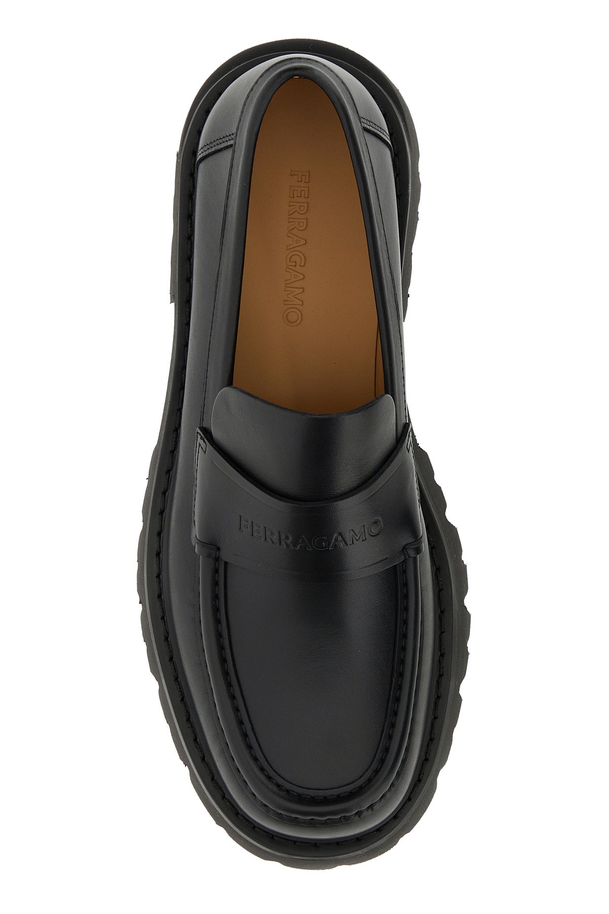 Loafers realized in smooth calf leather characterized by embossed logo on the vamp.