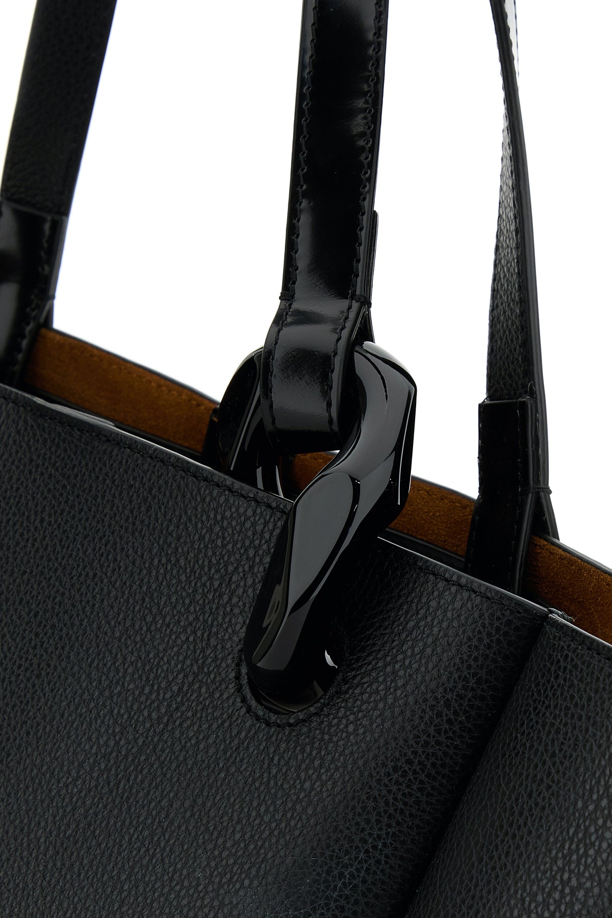 - Two tonal leather flat handles with Chain detail