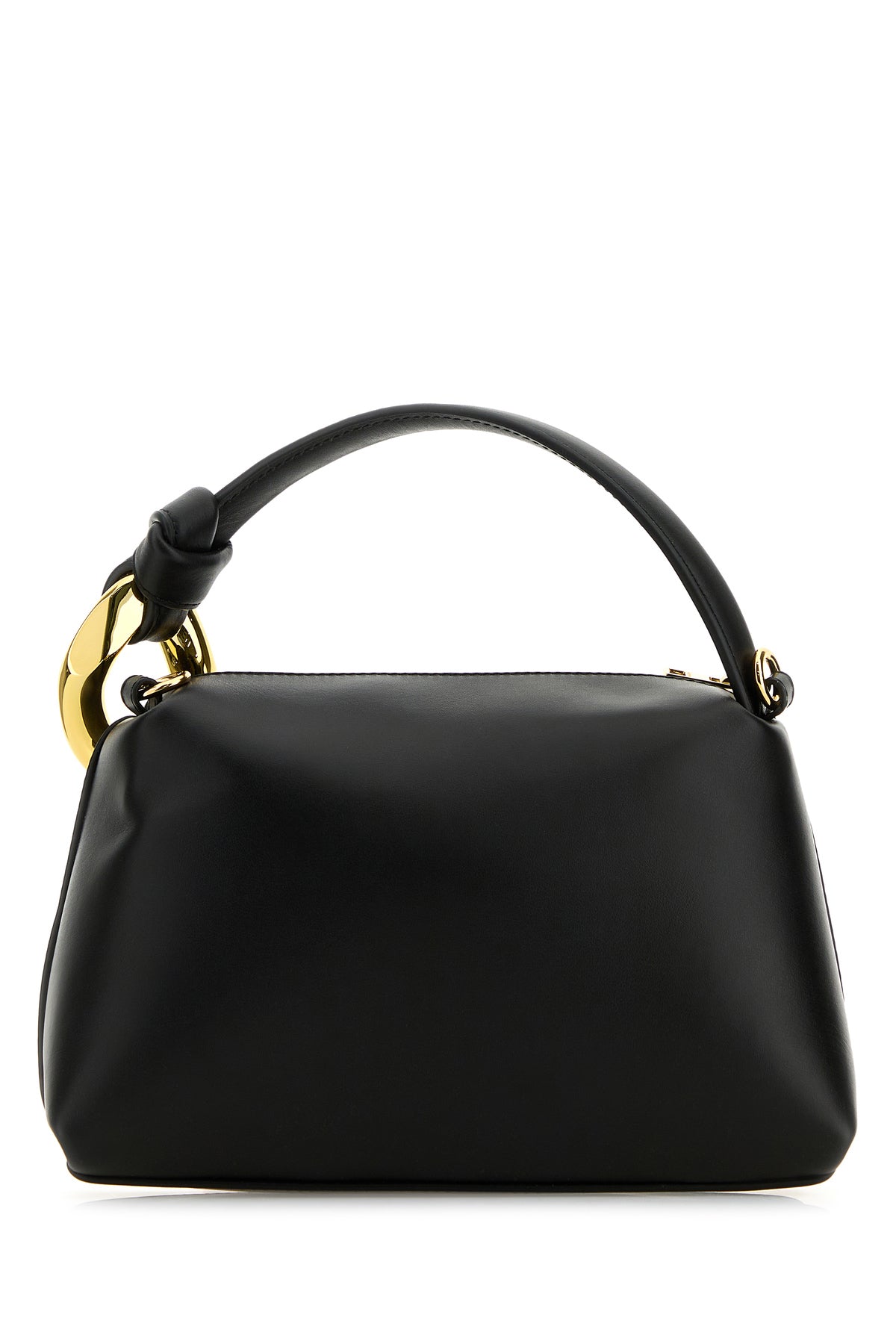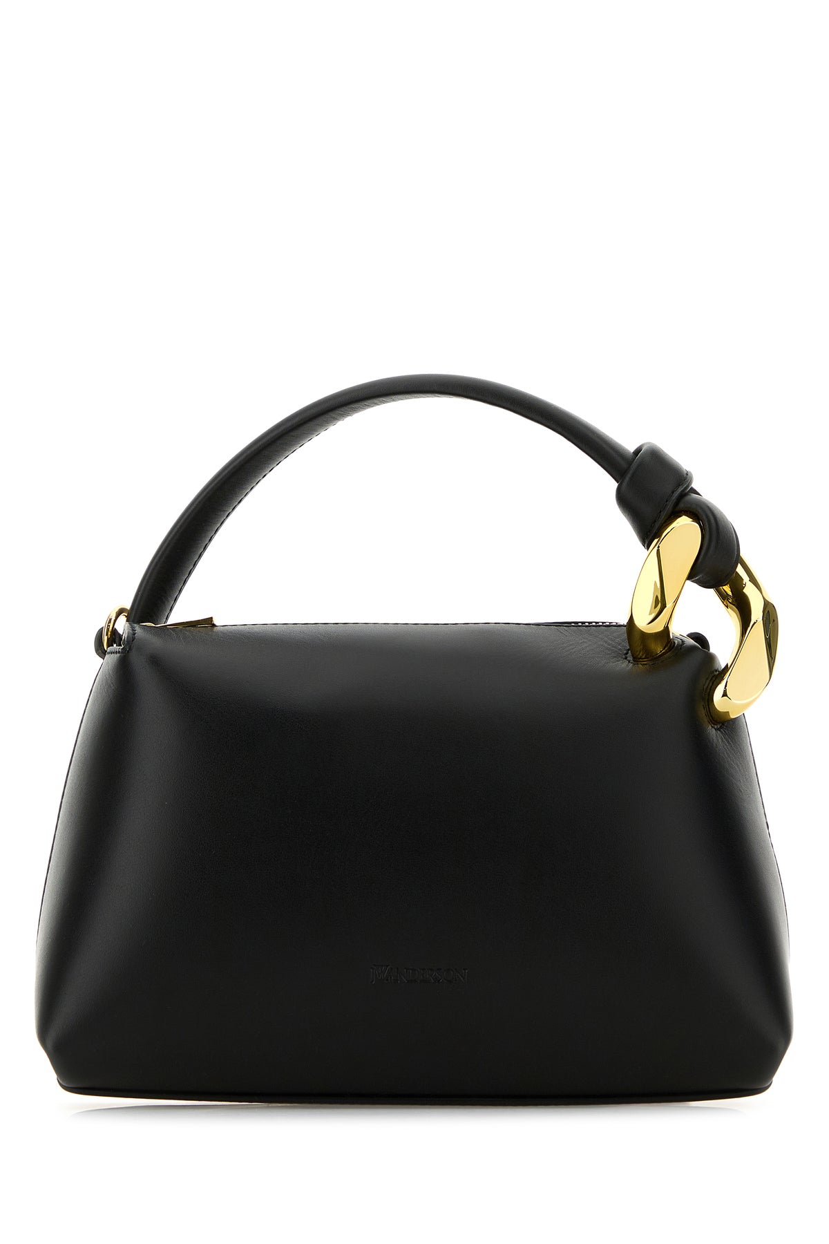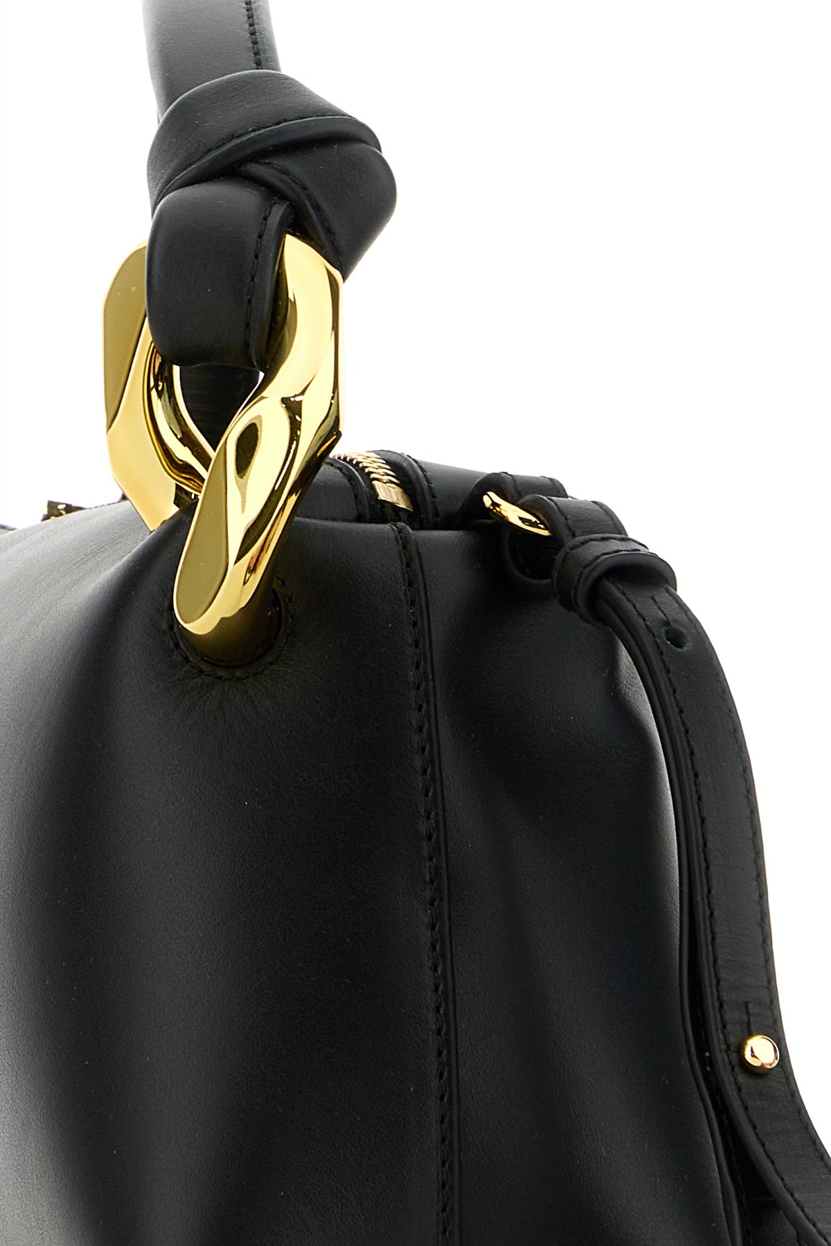Handbag realized in smooth calf leather characterized by embossed logo at the front enriched by metal Chain detail on the handle.