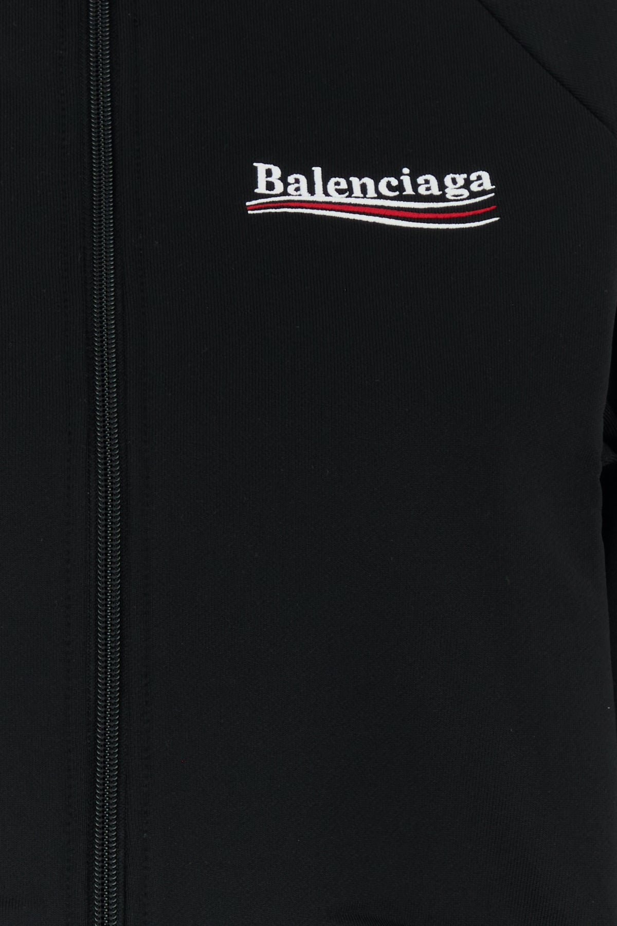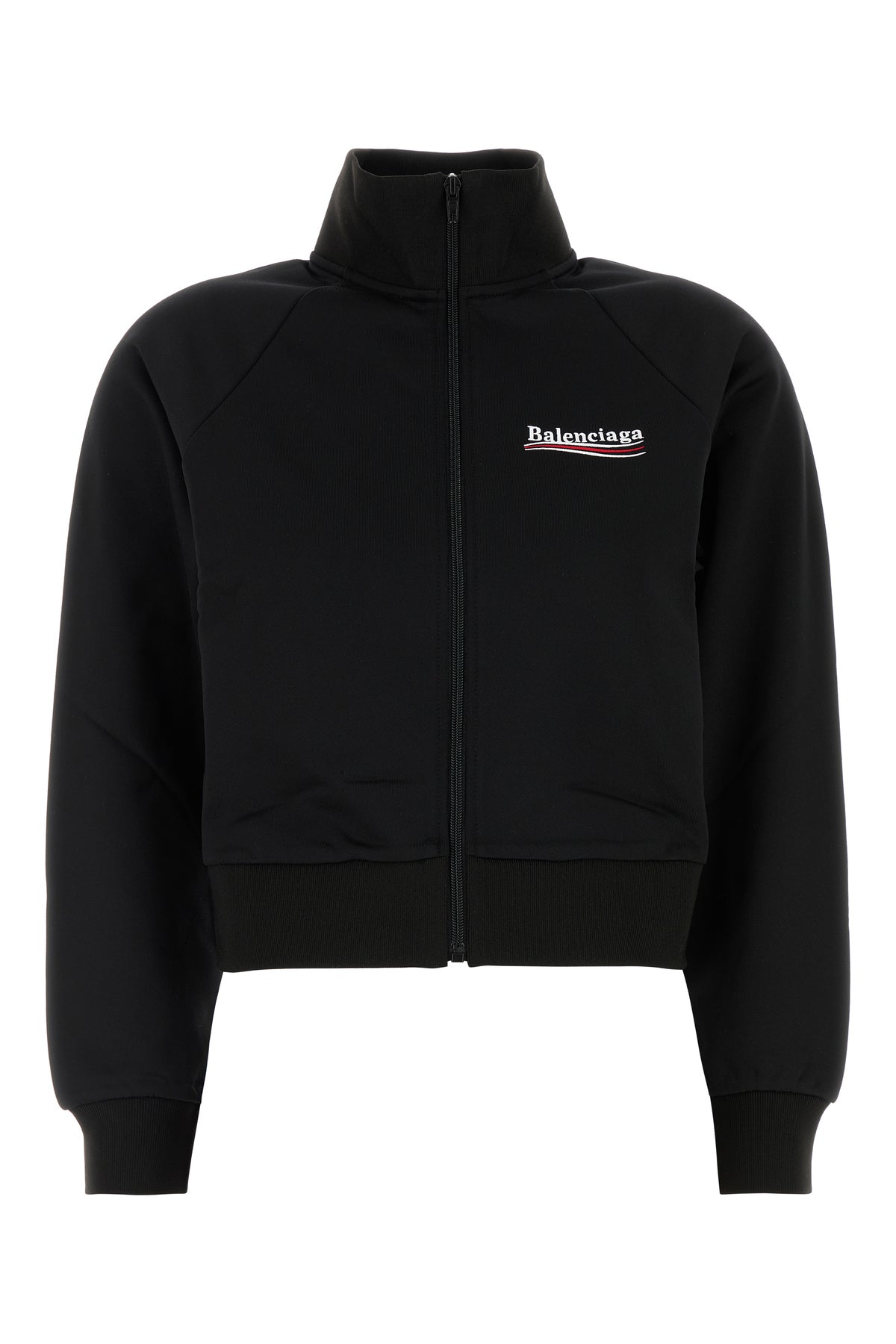 Cropped-cut sweatshirt realized in nylon blend characterized by contrasting embroidered logo on the chest and at the back.