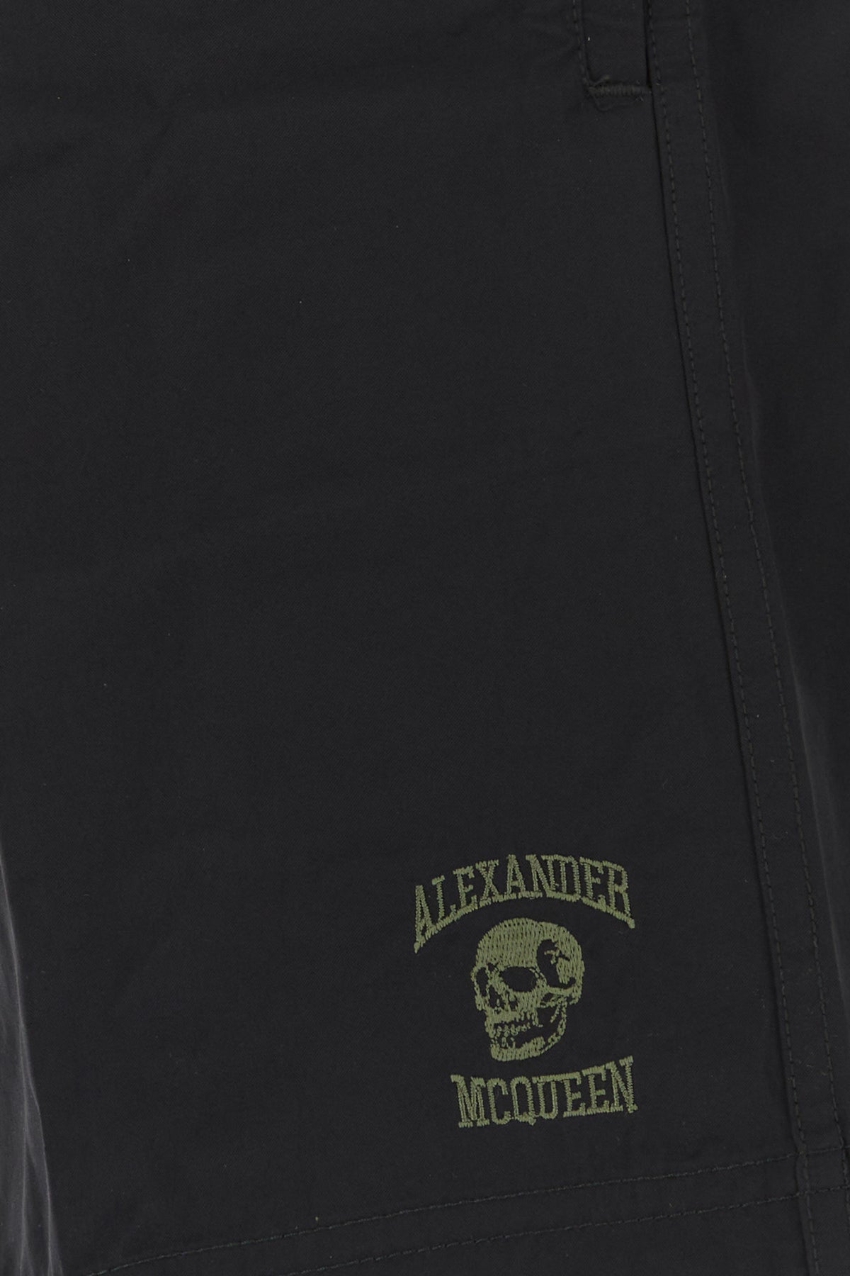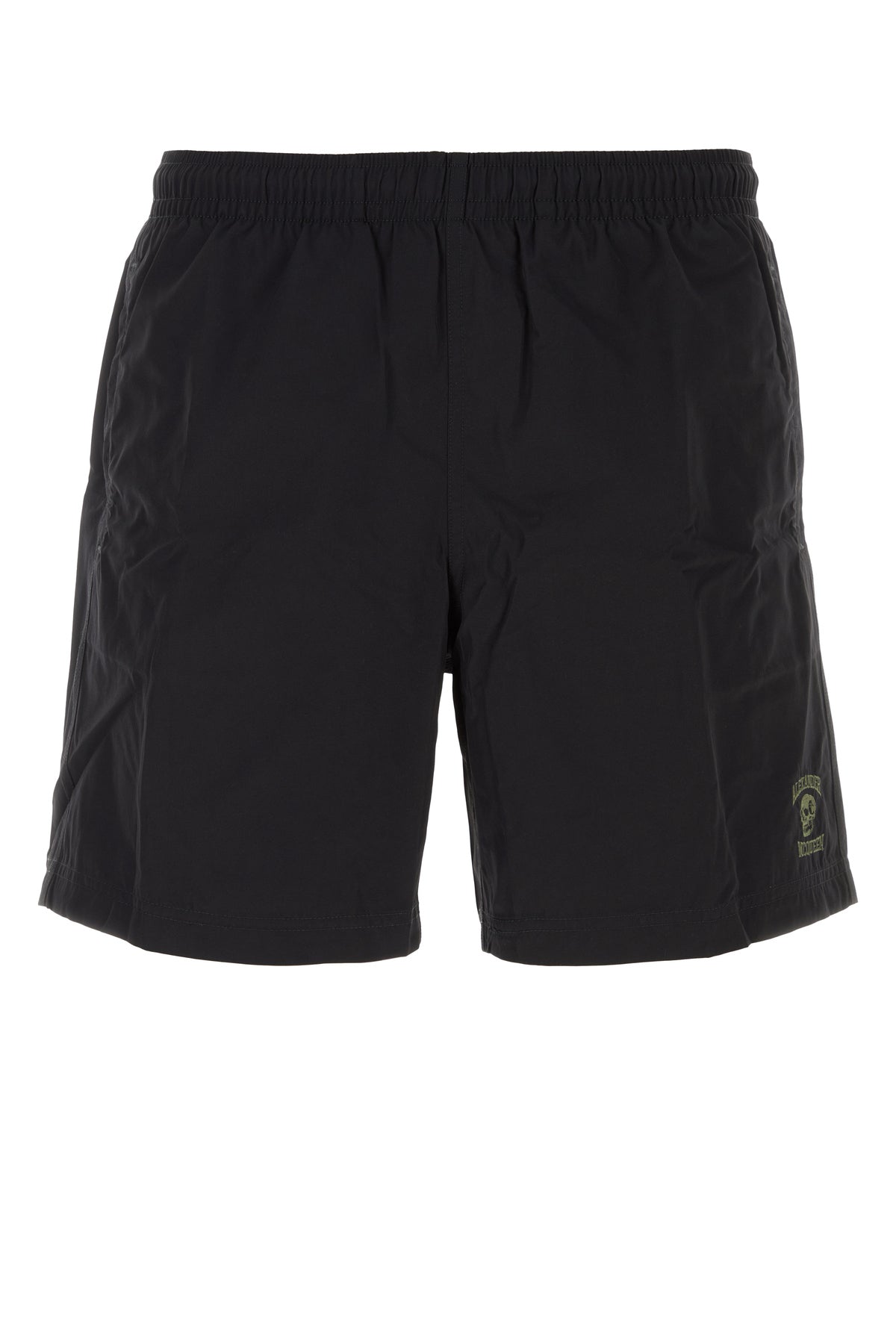 Swimming shorts realized in nylon characterized by contrasting logoed embroidery on the hemline.