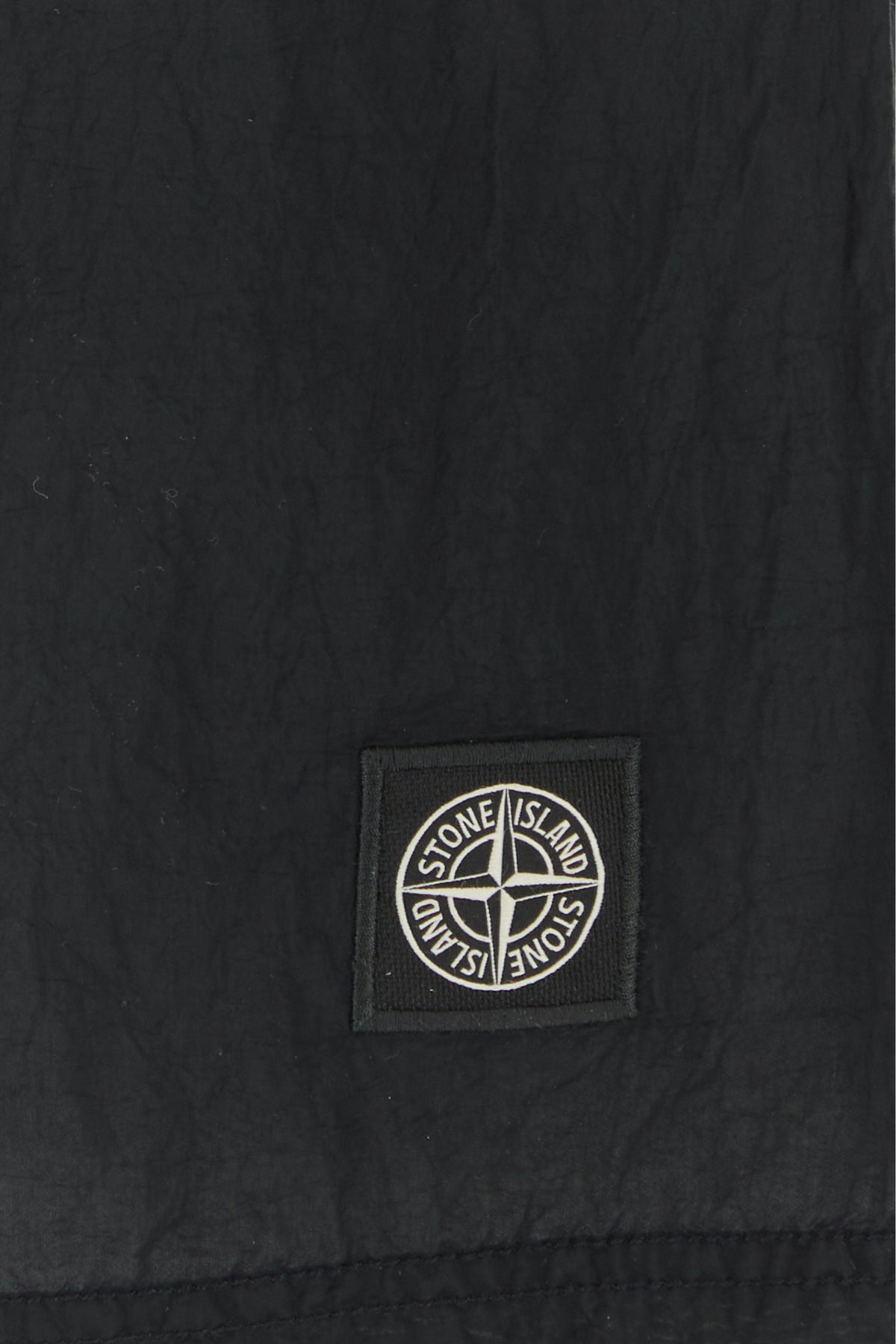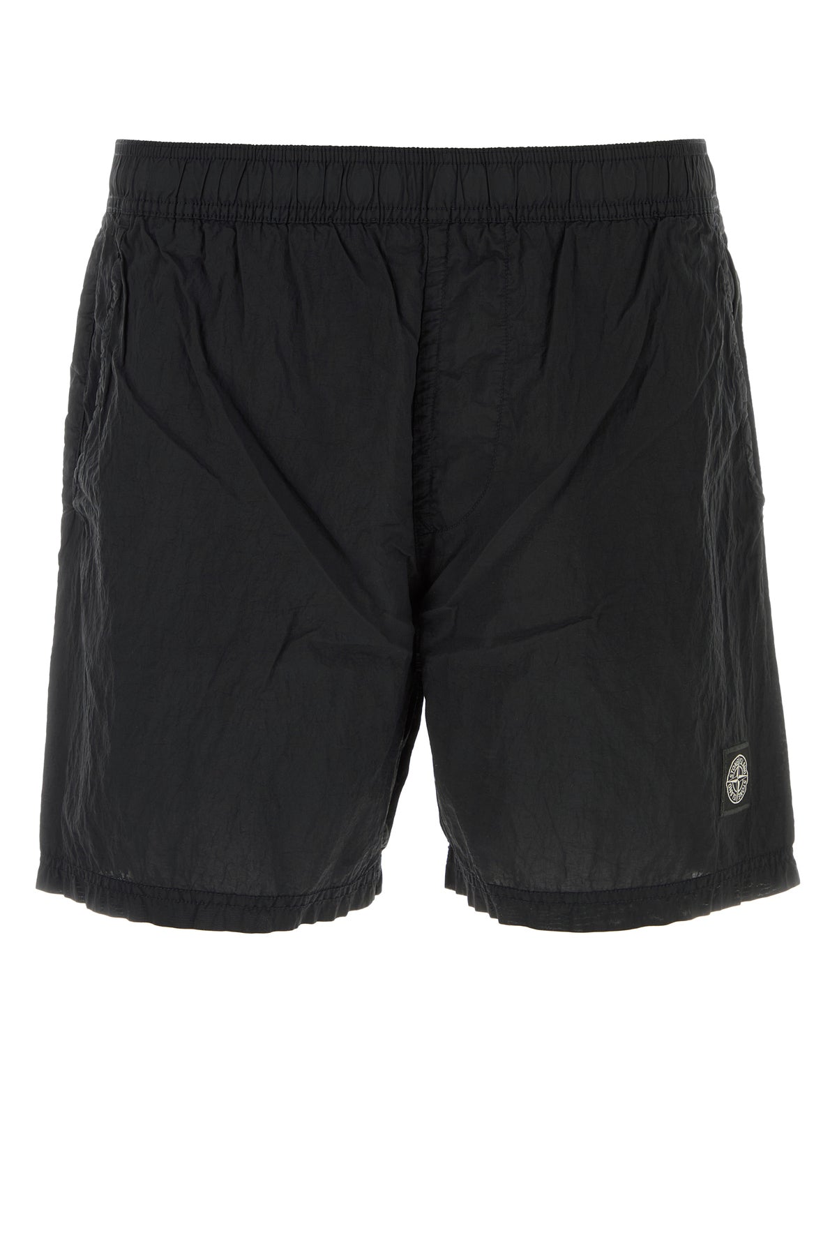 Swimming shorts realized in creased-effect nylon enriched by logoed label at the front.