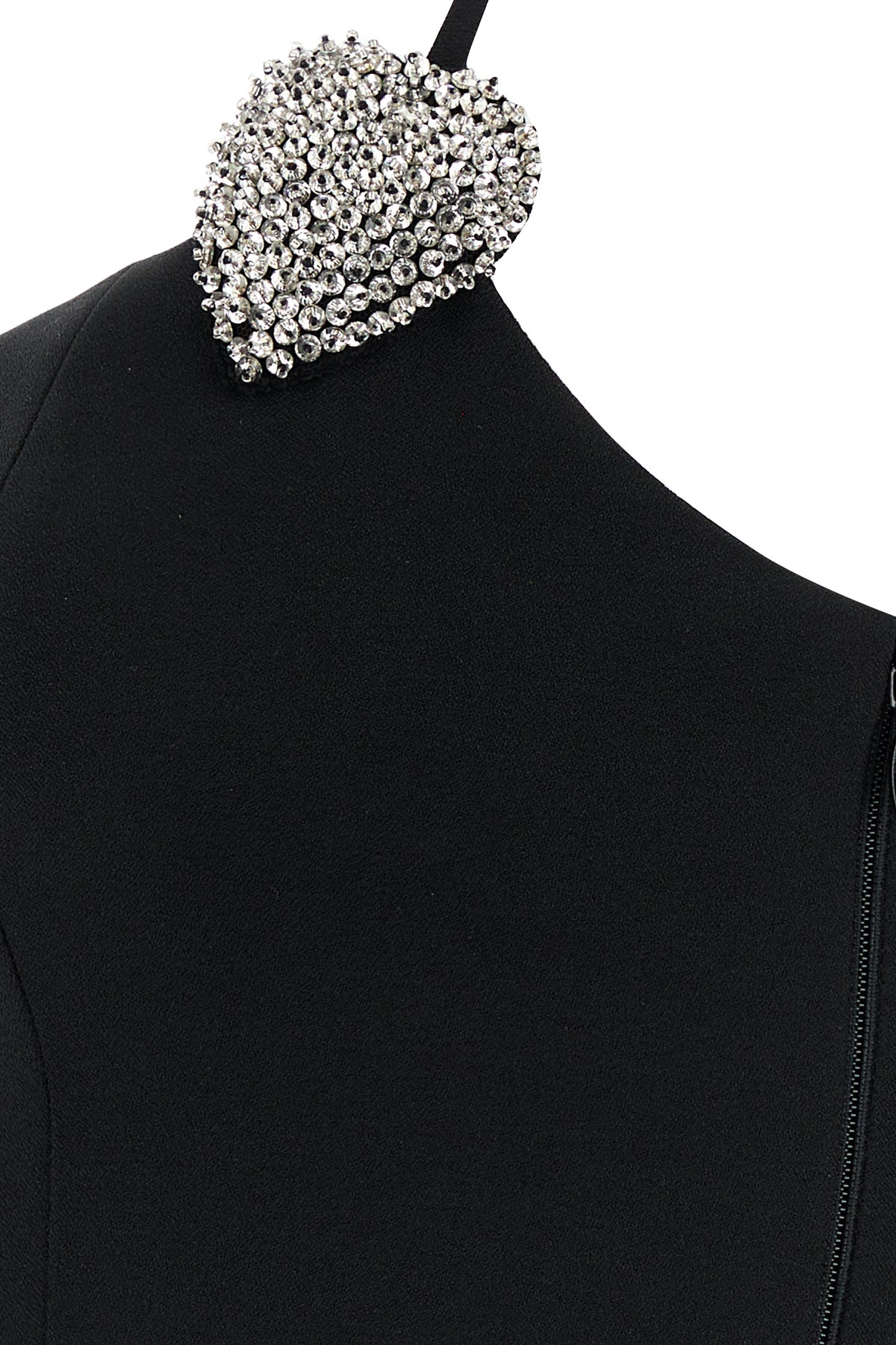 Mini dress realized in stretch cady enriched by heart-shaped patches with sequins at the top.