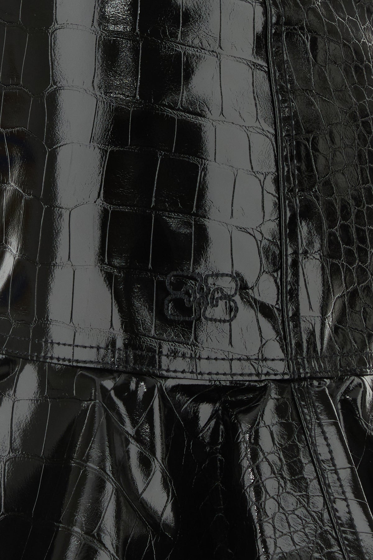 Mini skirt realized in crocodile embossed motif polished-finish synthetic leather enriched by tonal synthetic leather flounce on the hemline.