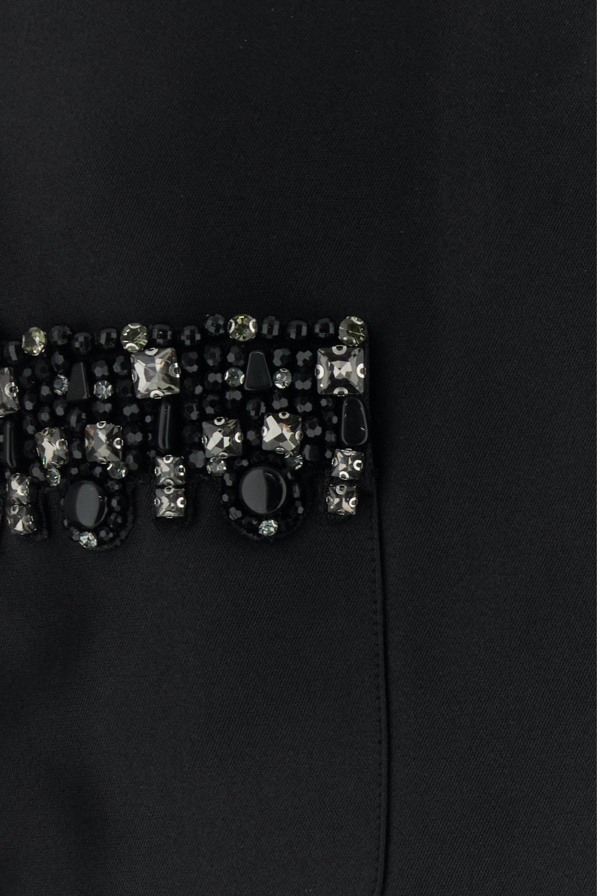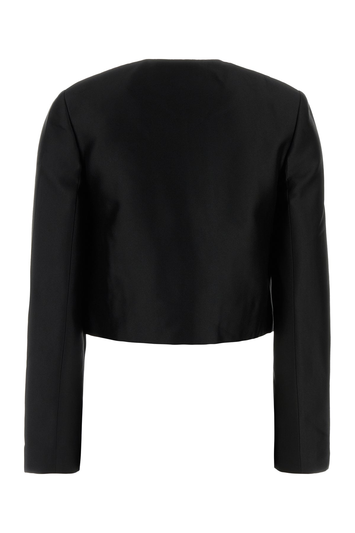 Cropped-cut blazer realized in taffeta enriched by jewel embellishments at the front.