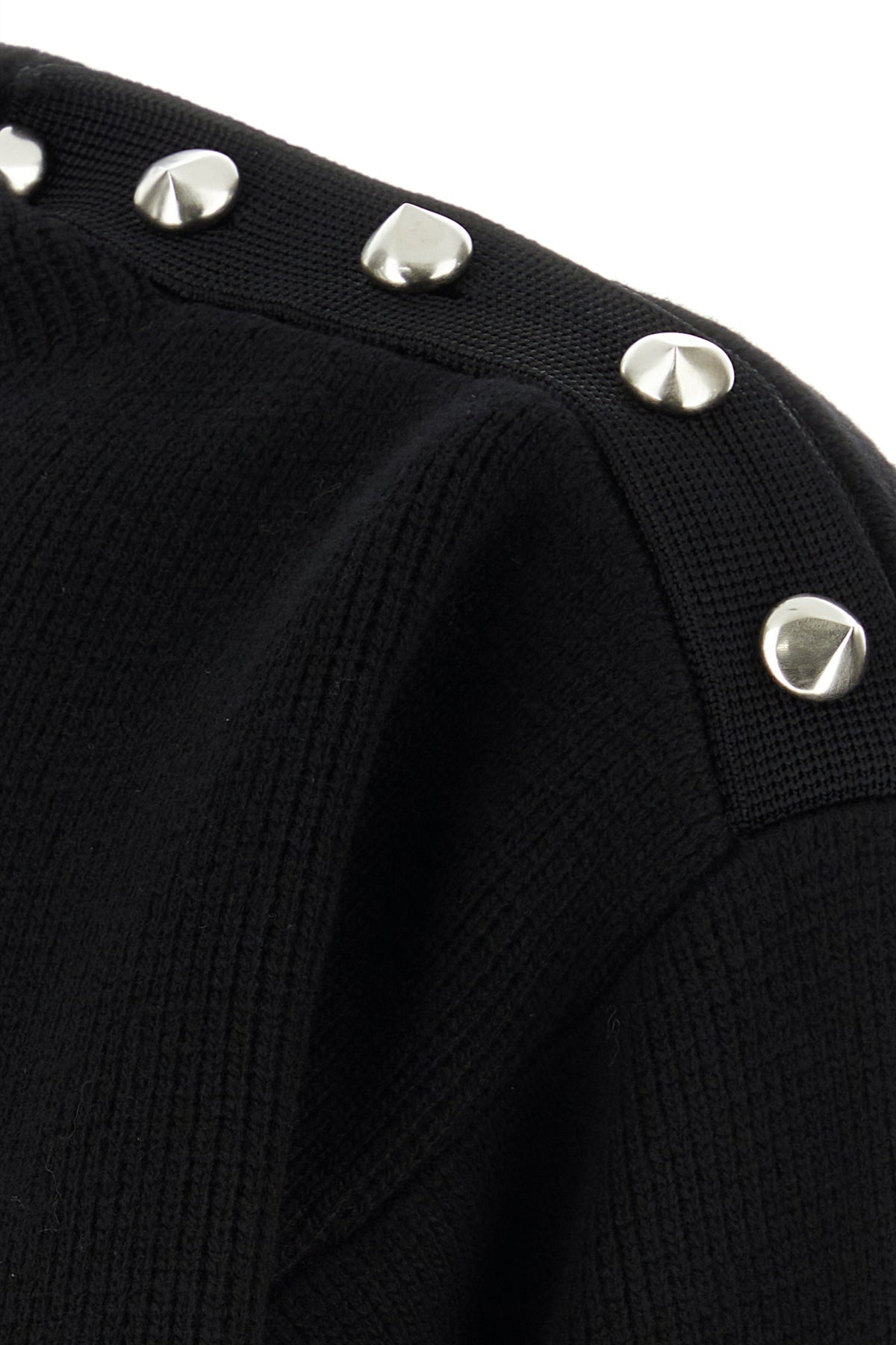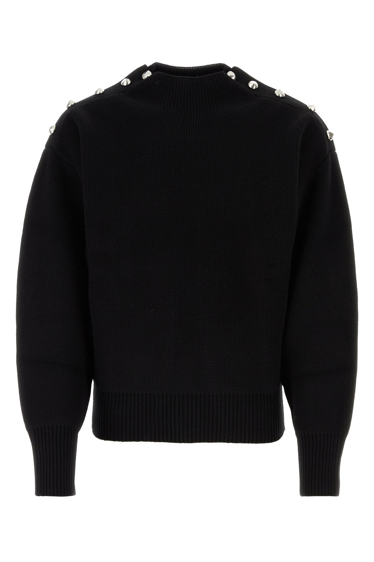 Sweater realized in virgin wool blend enriched by peculiar metal details on the shoulders.