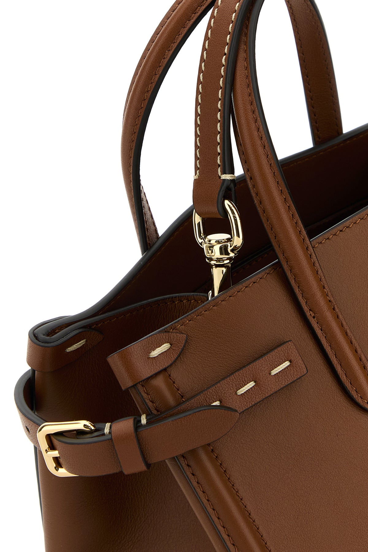 - Two tonal leather flat handles