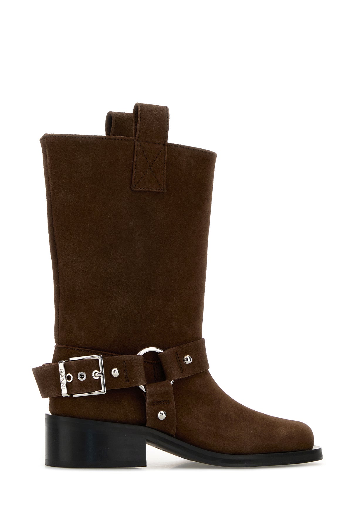 Boots realized in suede enriched by strap on the heel.
