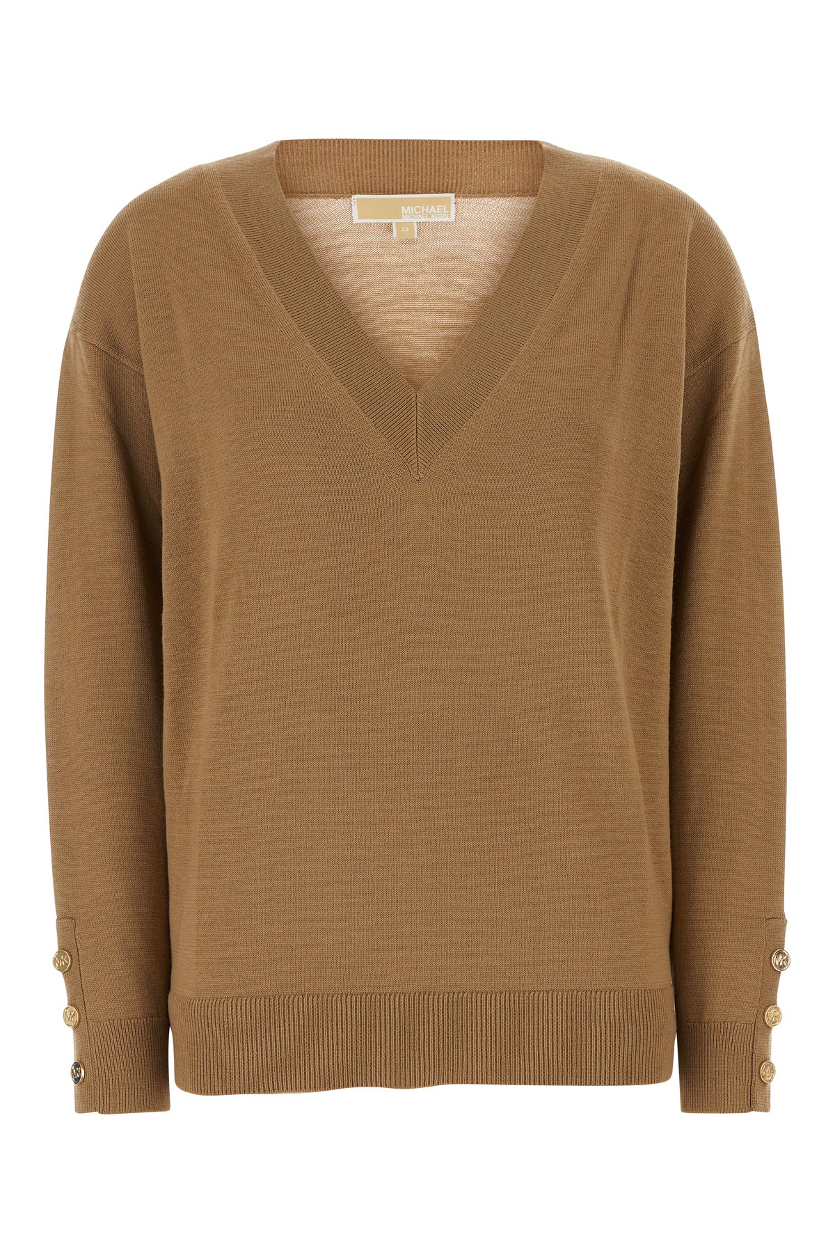 Sweater realized in pure merino wool enriched by logoed metal plate at the back.